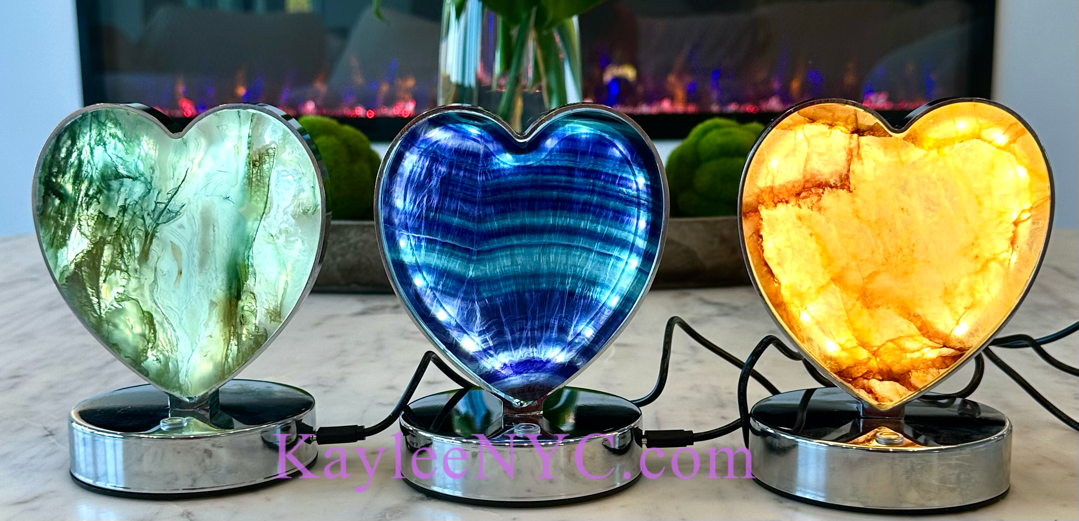 Natural Crystal Moon Lamps. You will receive 1 Golden Healer, 1 Rainbow Fluorite, and 1 Moss Agate. Each lamp is roughly 6"H x 4"W and comes with a USB cable 3.5' in length. LED lights built in has 3 different color settings. Minimum order 3 Pcs. Condition is new and comes in a box. Free local pickup in Brooklyn, New York. Stones, stone, crystal, crystals, crystals bulk, crystals wholesale, spiritual, spiritual items, meditation, metaphysical wholesale.