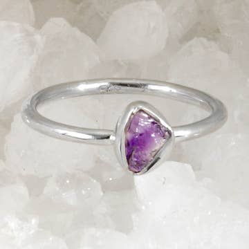 Rough ruby is embedded in brass to create this simple and sweet ring. Wear this ring alone or stack with others. Stone length 5/8" This piece is handmade-to-order. Each piece will vary slightly due to the uniqueness of the stones. All metal is nickel-free.