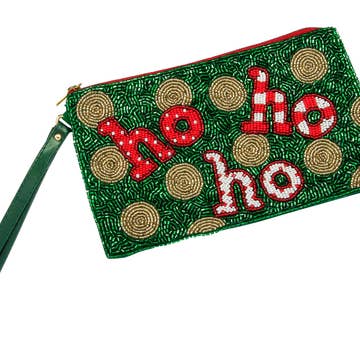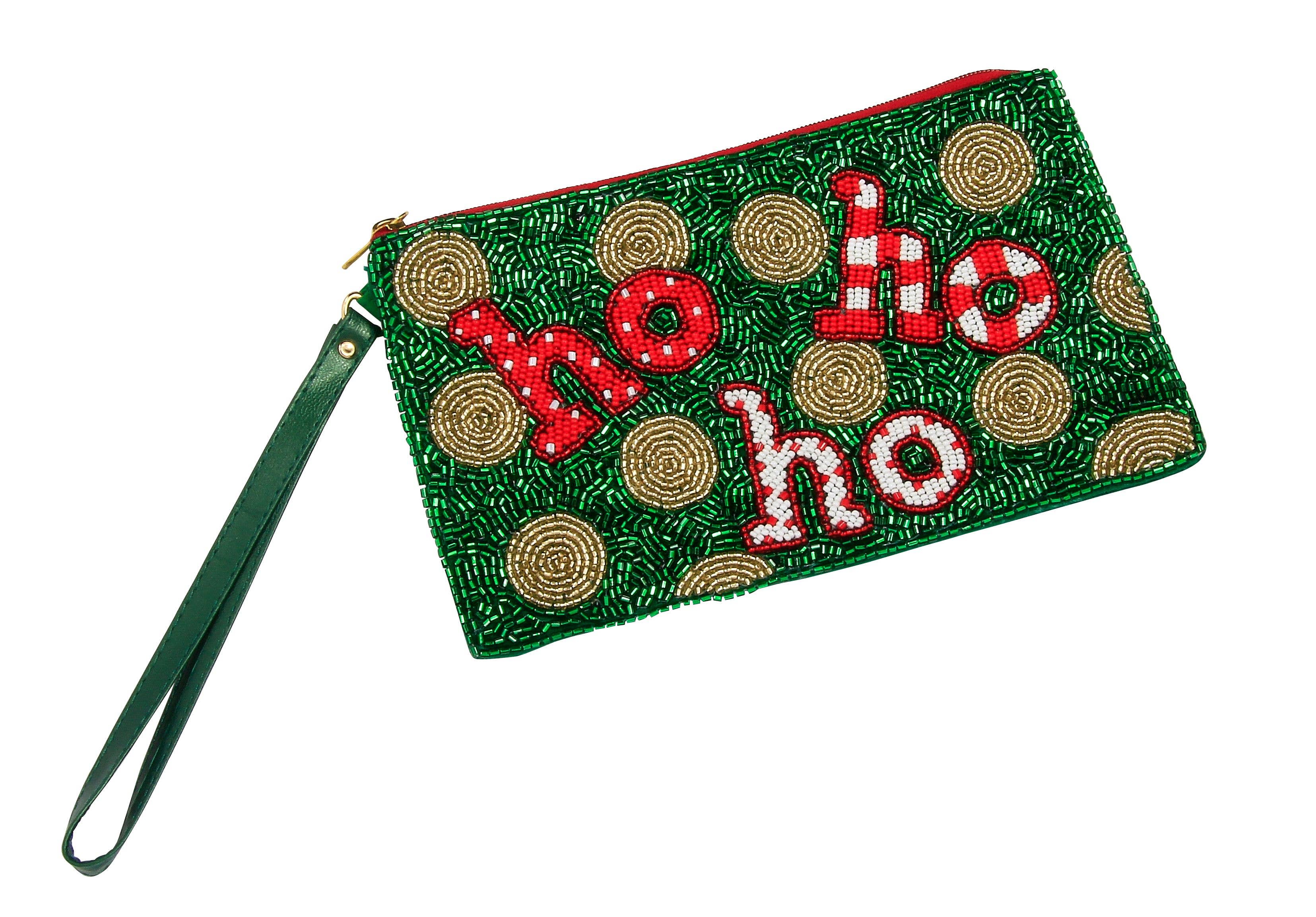 Size : 5.5" X 4.5" (appx) No Inside Pocket Beads On Front Only Bag Only (items are not included) Zipper Closure Charming beaded clutch featuring two festive gnomes on a shimmering sequin background with colorful pearl accents. A playful holiday accessory perfect for Christmas parties, seasonal outfits, or gifting someone special with a touch of whimsy.