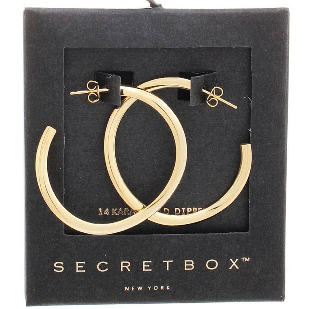 This pair of hoop earrings introduces a unique secret box 60mm wire hoop earrings style. Indulge in the artistry of accessorizing with this unique piece. Secret Box GD-14 Karat Gold Dipped WG-Sterling Silver Dipped