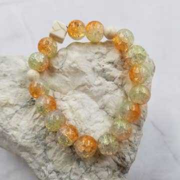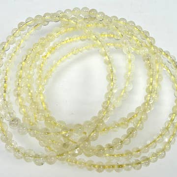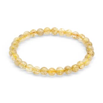 Citrine Beaded Bracelet - Wrist Mala - Prayer Beads - 6mm. Qualities or Properties of Citrine: A joyful stone with bright sun energy. Brings comfort & healing. Promotes and manifests success and abundance. Brings energies of generosity so that prosperity and success is shared. Comes in a Case Pack of 2. Bead Size: 6mm with 8mm Guru Bead. Bracelet Length: About 7 inches in the inside circumference. Fits average wrists.