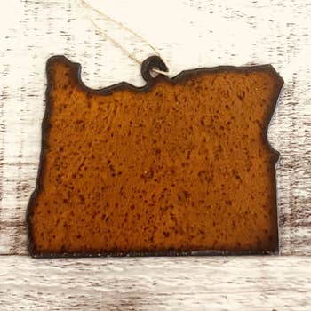 2D Ornament - Representing the great state of Oregon. Richly detailed with many of Oregon's popular cities and towns engraved on the back layer. A second layer is applied to the top with the outline word OREGON cut via a precision laser process. 3.5" wide