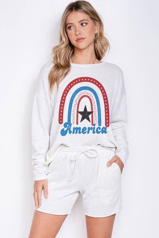 -American flag heart v neck loungewear set -Matching set -pajama lounge wear set -Soft fabric, casual style, every day wear. -Model size: Small ( 5'10" 31- 23- 34 ) -Made in USA 95% POLYESTER 5% SPANDEX (WT. 1.0)