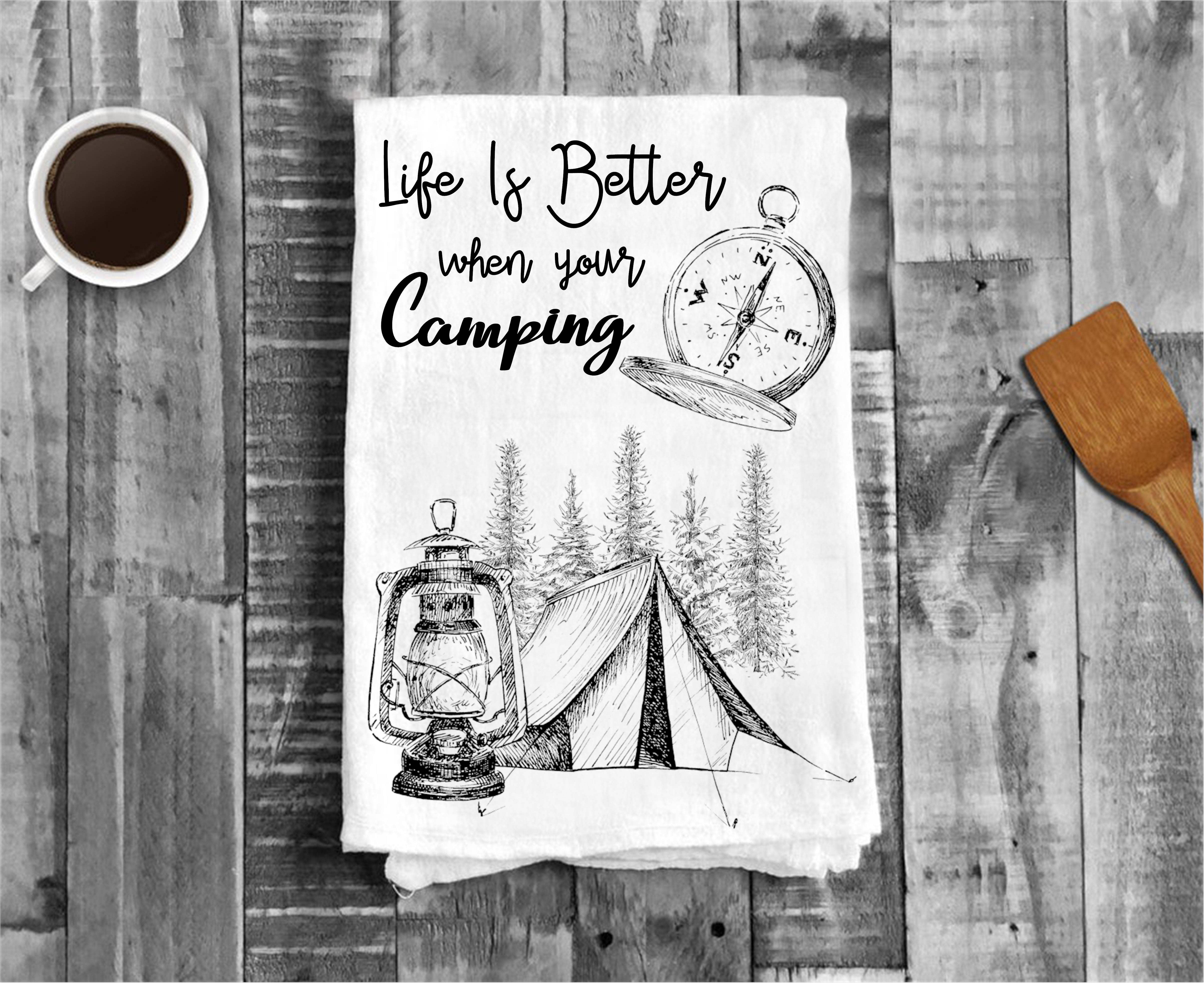 This fun RV camping towel is the perfect addition to your camper, home, and kitchen decor, and makes a great gift for anyone who loves to camp or any nature lovers. - Measures approximately 16”x 24” - Made of 80% Polyester and 20% Polyamide. - Design is permanently printed - Individually packaged in cellophane sleeve and ready to be gifted - It is called a waffle weave because the towel has raised looped edges on the surface of the towel in the shape like that on a delicious Belgian Waffle. These “pockets'' that are created hold water while the surface of the cloth stays dry making it an exceptional drying towel! The raised looped edges on this lint free towel make it great for all around use, while also being great on glass.