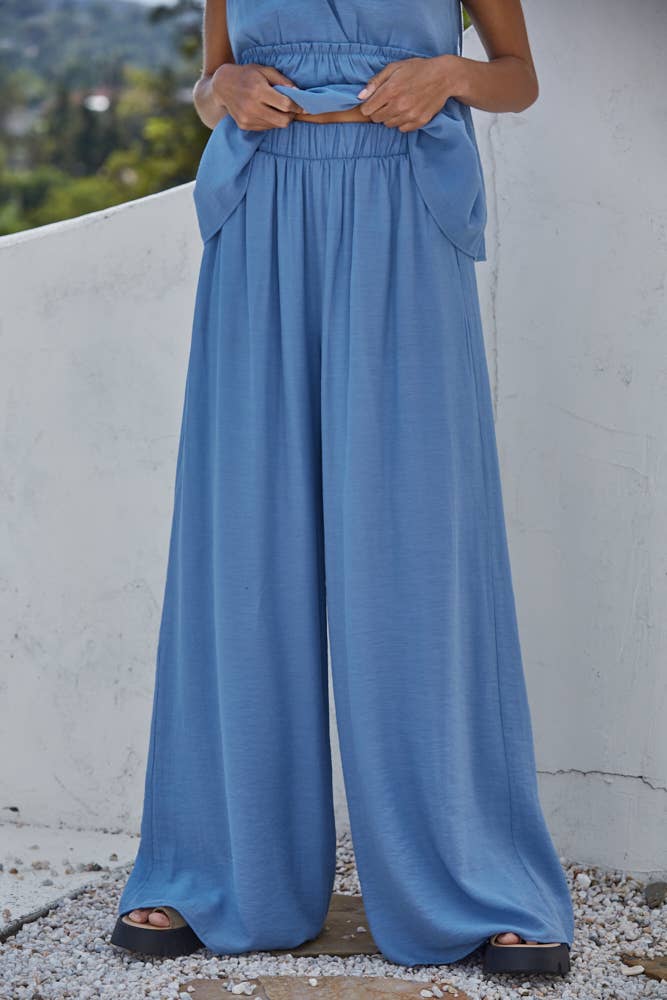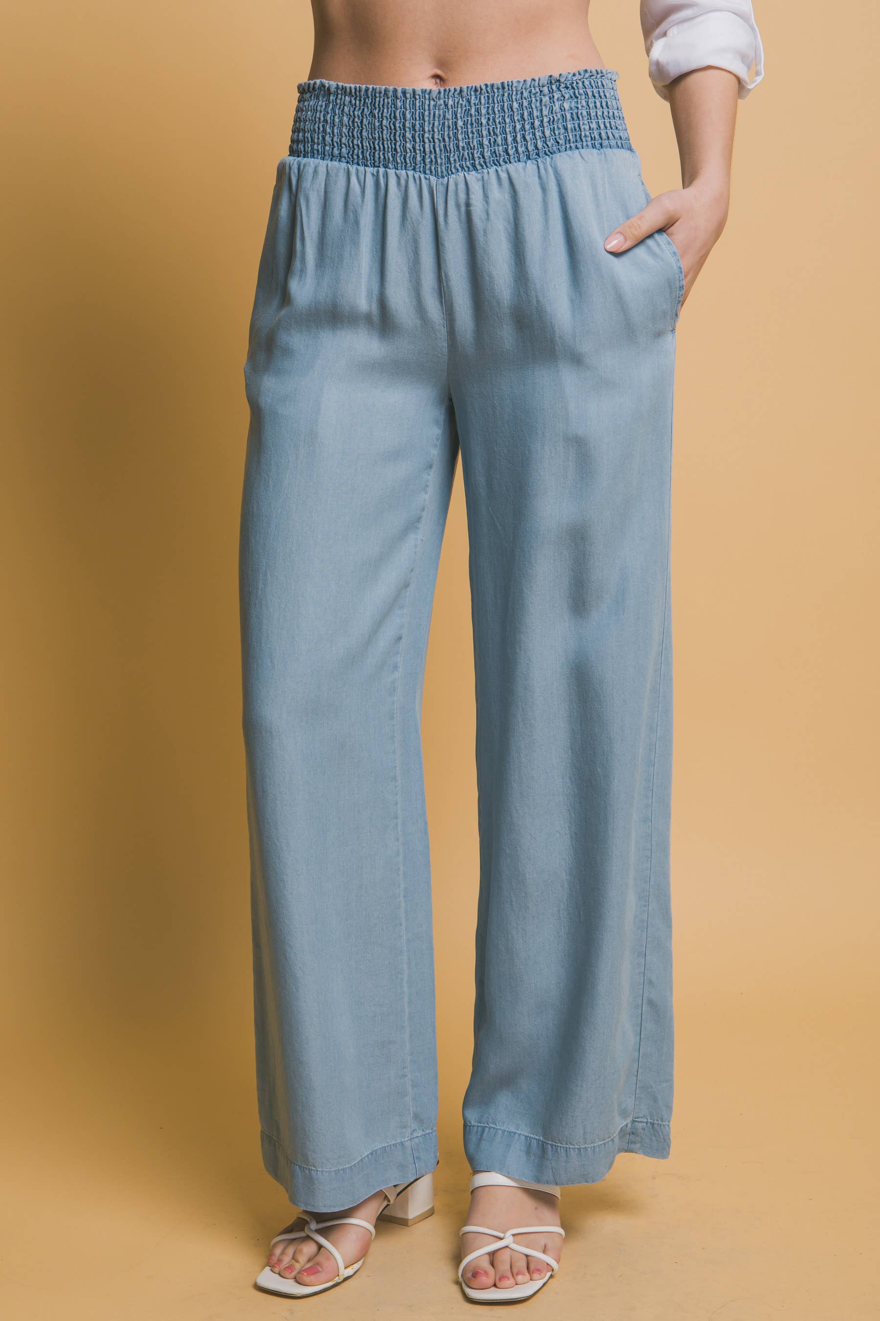 Elasticated Waistband Pleated Pockets Wide-Leg Pants