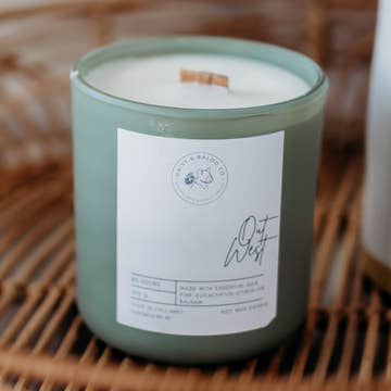 a buckin' good candle for summertime happiness! an elegantly floral top note with a woody finish, transcends you to spring/summer trail rides. A spicy floral slow burning aroma will fill a large room. matte black ceramic vessel with bamboo lid and kraft label 8oz 40hr burn two wooden wicks 100% soy wax hand poured Phthalate Free Paraben Free SLS + SLES Free *labels were inspired by my two horses*