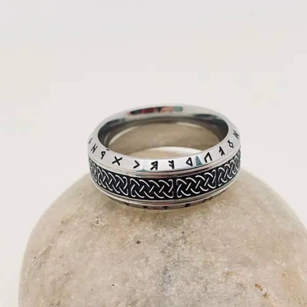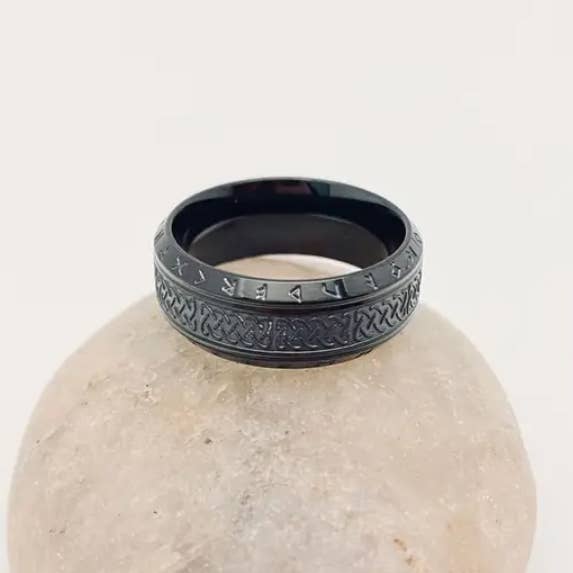 Wholesale Vintage Viking Text Luen Rune Titanium Steel Ring - MJ/MR
