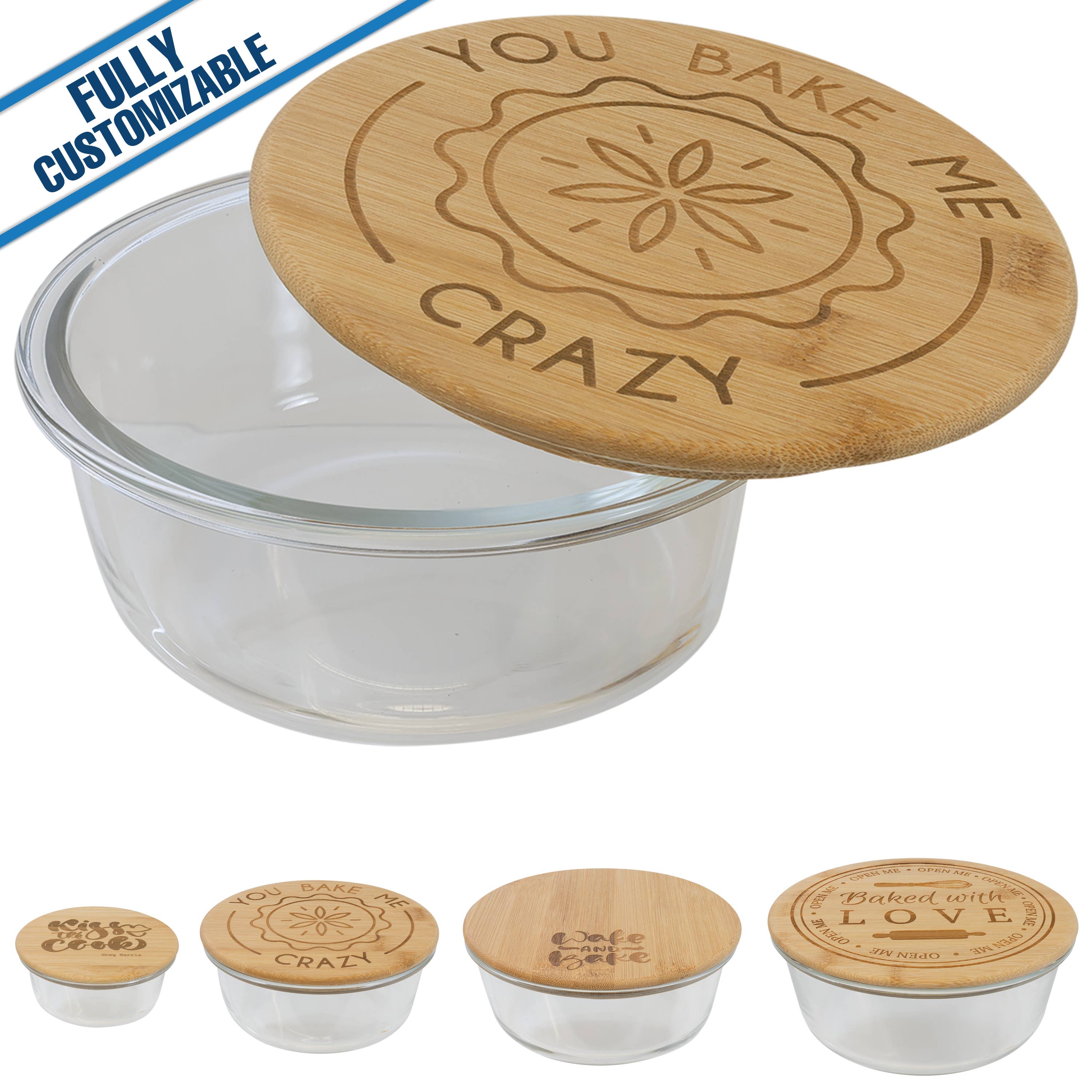 The design is fully customizable. Please provide your contact information (Name, phone#, & email). Please explain what you would like for your design (including text). If you have usable images to provide please note that you will be emailing images separately. Please email them to orders@giftworksplus.com. Please note that you will receive design proofs that will need to be approved before production of the order. Discover the perfect blend of style and function with our bamboo glass containers. Personalize the bamboo lid to create custom gifts, incentives, or promotional items. They're also great for fundraisers and gift or souvenir shops! NO set-up fees! NO design fees! Free personalization! 1 piece minimum! Engraved on the exterior of the lid The glass is dishwasher, microwave and oven safe The bamboo lid is handwash only A flexible ring on the inside of the lid creates a tight seal Please wash before first use.