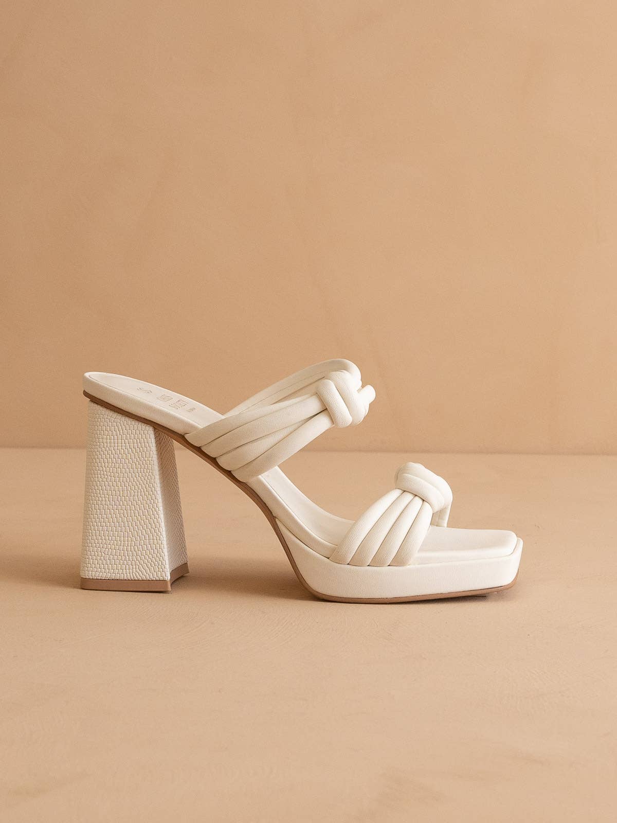 A gorgeous, girly, minimalist heel with sweet rosettes on a square toe sandal. Materials: * Upper Material: Vegan Leather Upper * Insole Material: DreamCloud Cushion * Sole or Heel Material: Synthetic Wrap Heel Details: * Brand: Oasis Society * Size Run: S * Heel Height: 3" * Types of Closures: Slip On
