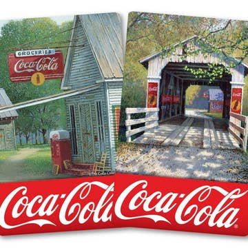 Collect iconic Coca-Cola art while learning about the history of this cultural icon. Play on a vintage style game board featuring all the classic advertising that made Coke famous! Each card features an important milestone in Coke history, from the invention of the Coca-Cola formula, to the world-wide brand that everyone keeps in the fridge for that refreshing taste! It’s always Coca-Cola. This game comes with 6 Collectible Metal Tokens, 22 Vintage Art Cards, 4 Refreshments! Cards, 2 Drink Up Cards, 16 Coca-Cola Cards, 16 Coke Cards, 1 Pack of Money, 32 Discs, 12 Six-Packs, 2 dice, and game instructions. Each of the cards comes with unique trivia. For 2-6 players.