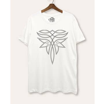 This is our signature cowl neck t-shirt in black fabric, featuring our Morse Code for SOS. There is a slit on the top of “sleeves” and left raw for flair. This is a style we came up with years ago and my clients come back for more. The t-shirt fabric is so soft and the cowl neck style creates a very flattering effect on all body types. And as always these are hand silk-screened and handmade by us!