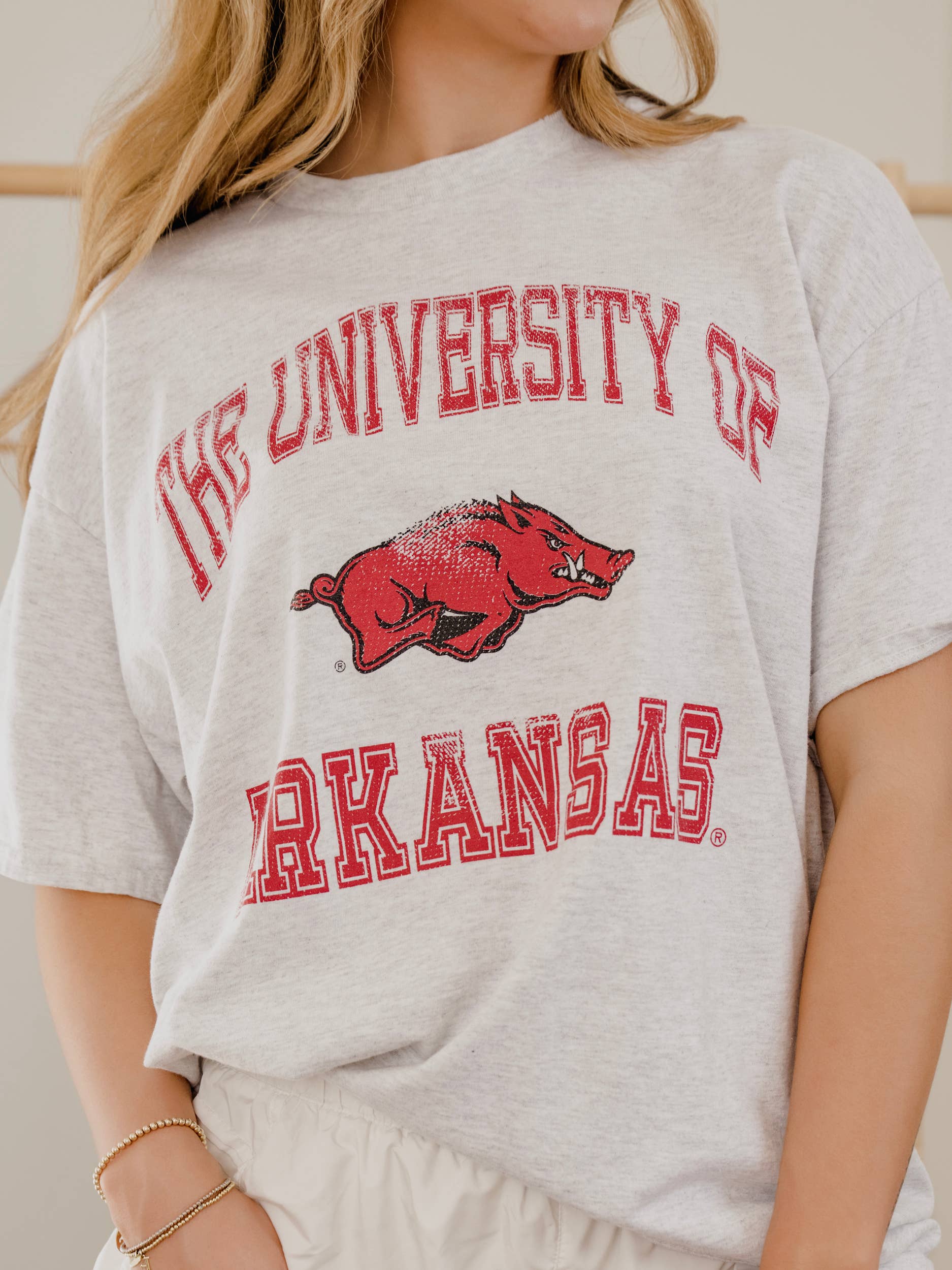 Printed in Fayetteville, Arkansas – home of the University of Arkansas Razorbacks. Many of our tees are vintage logos, which make them unique. Perfect for game day or any Razorback fan wanting to represent their team. We offer these designs on quality products for your comfort. Most of our t-shirts are unisex sizes and designs, so that they are versatile in any storefront. This item is printed on a Grey Comfort Colors tee.
