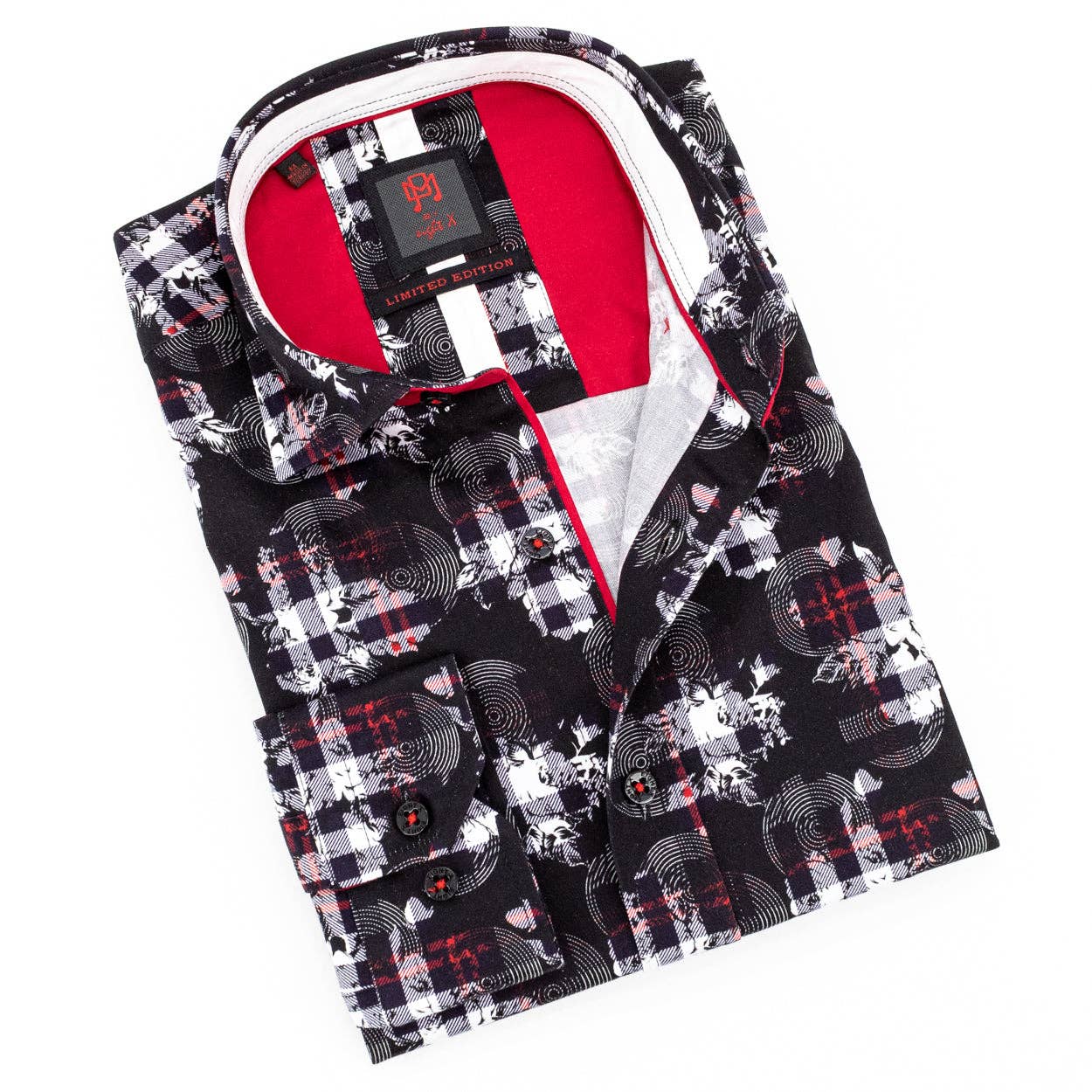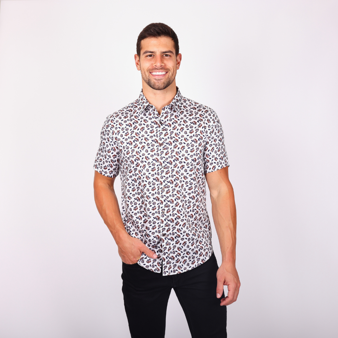 Whether your customer prefers their shirt tucked or untucked, we’ve got them (literally) covered with our untuckable dress shirts. These expertly crafted beauties also feature adjustable notch cuffs, a reinforced side seam accent, and a spread collar that looks perfect with or without a necktie. Bottom line? They're going to need more closet space. This White Untuckable Classic Fit Dress Shirt with Navy and red specks by Alynn is a perfect addition to your stores offering. These expertly crafted beauties also feature adjustable notch cuffs, a reinforced side seam accent, and a spread collar that looks perfect with or without a necktie. Bottom line? Your customers going to need more closet space. Our Classic Fit is slightly fuller in the chest, waist, and sleeve for a comfortable, easy wear. Pro tip: Our Untuckable Dress Shirts, made to be 1.5 inches shorter than the average shirt, are best worn free and untucked for a relaxed look. Of course, tuck it in all you want whenever the occ