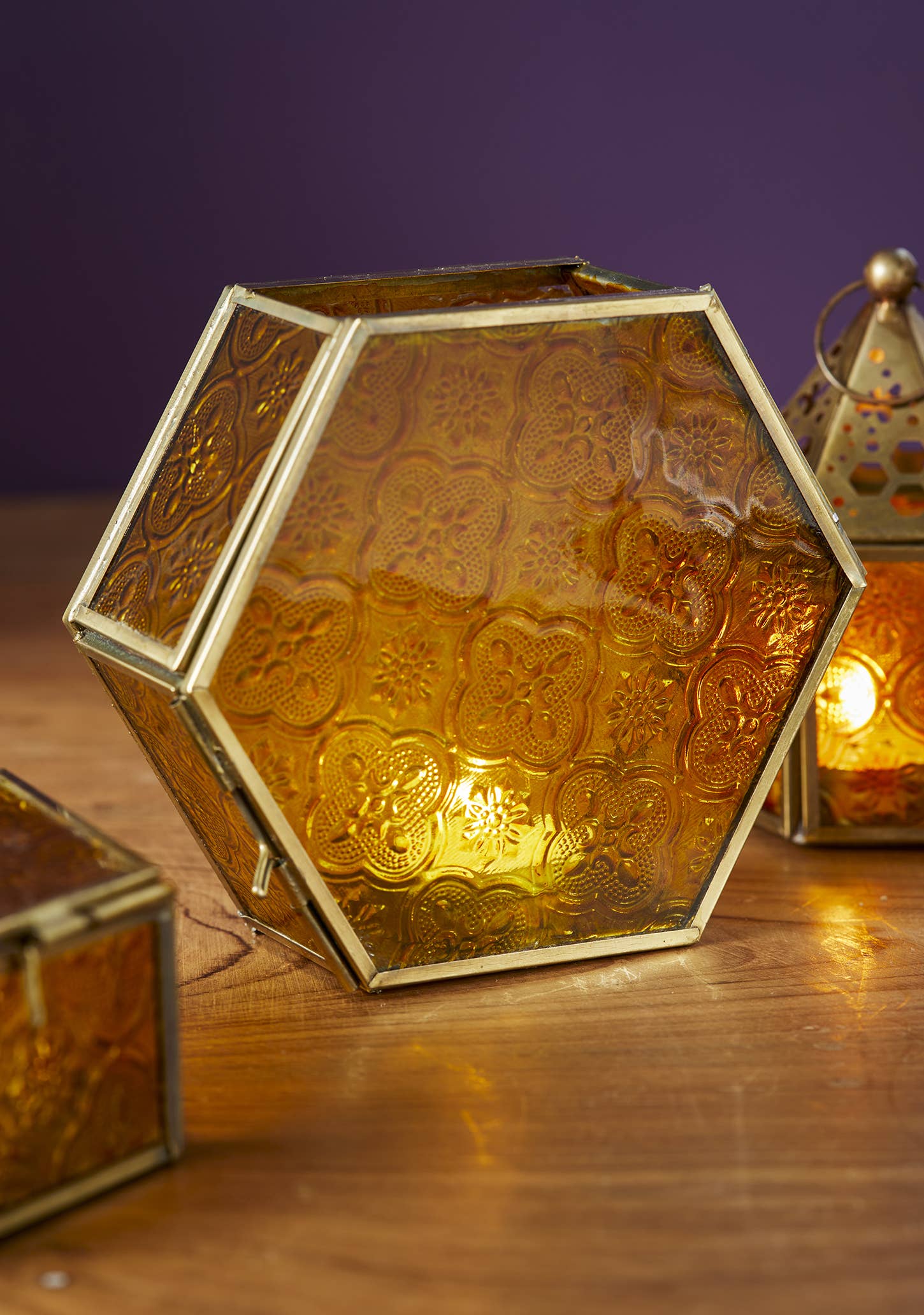 A pentagon shaped metalwork and green glass standing tealight lantern. The hand crafted metal panels are decorated with the tree of life. Ideal as indoor table centrepieces and summer table decorations for garden parties and eating alfresco. Light to provide a comforting indoor glow and inspiration on darker days. 12 x 5.5 x 12cm Handmade Metalwork & Glass Please note, this product requires a candle as a light source. Be careful with the flame of the candle when this product is lit. Keep away from flammables, children and pets. Wipe occasionally with warm soapy water and a soft cloth to prevent the build up of debris. Members of the World Fair Trade Organisation, this supplier advocates the preservation of traditional Indian skills by supporting over 800 artisans in promoting their handcrafted products around the globe. Helping producers access avenues for sustainable livelihoods is paramount in an increasingly commercial world.
