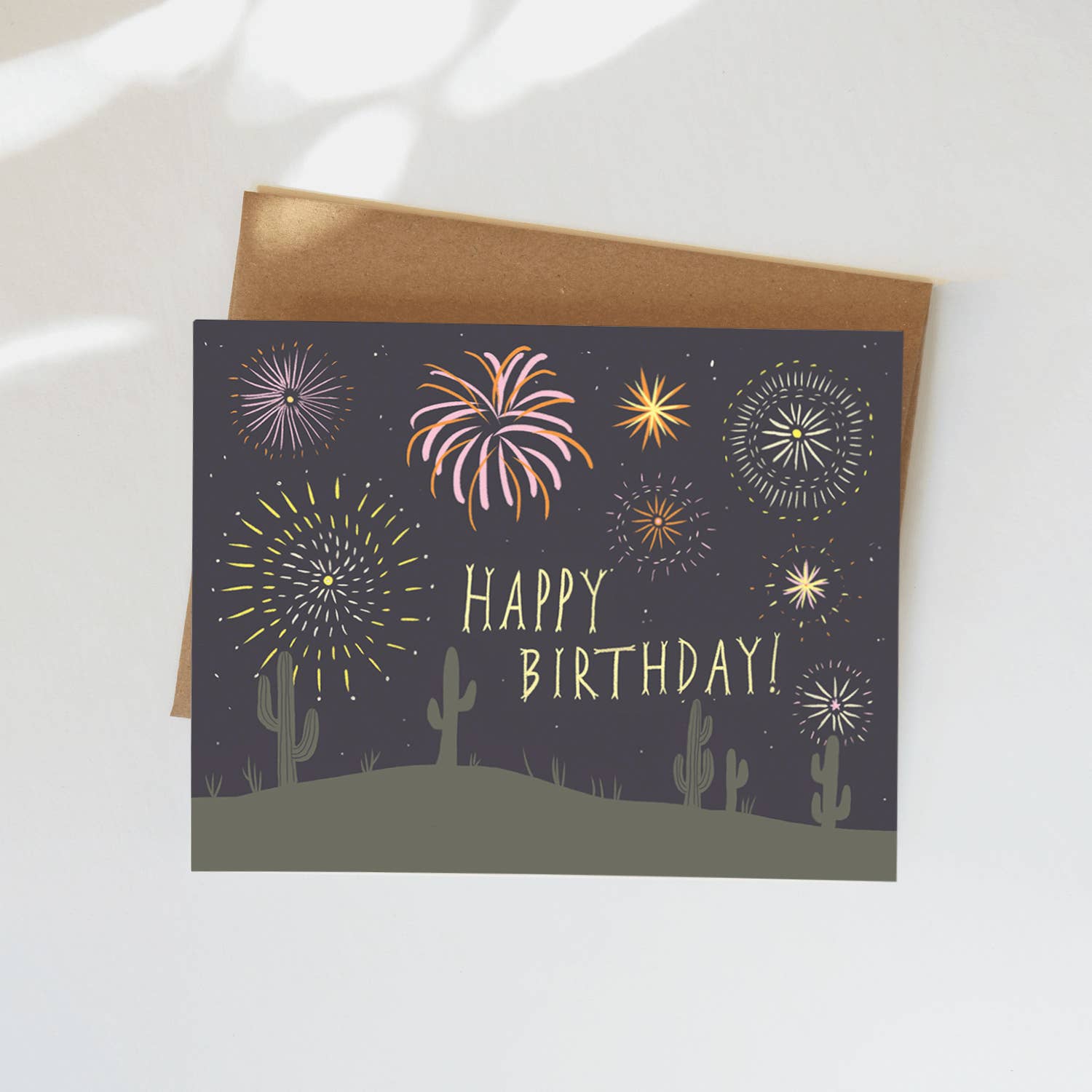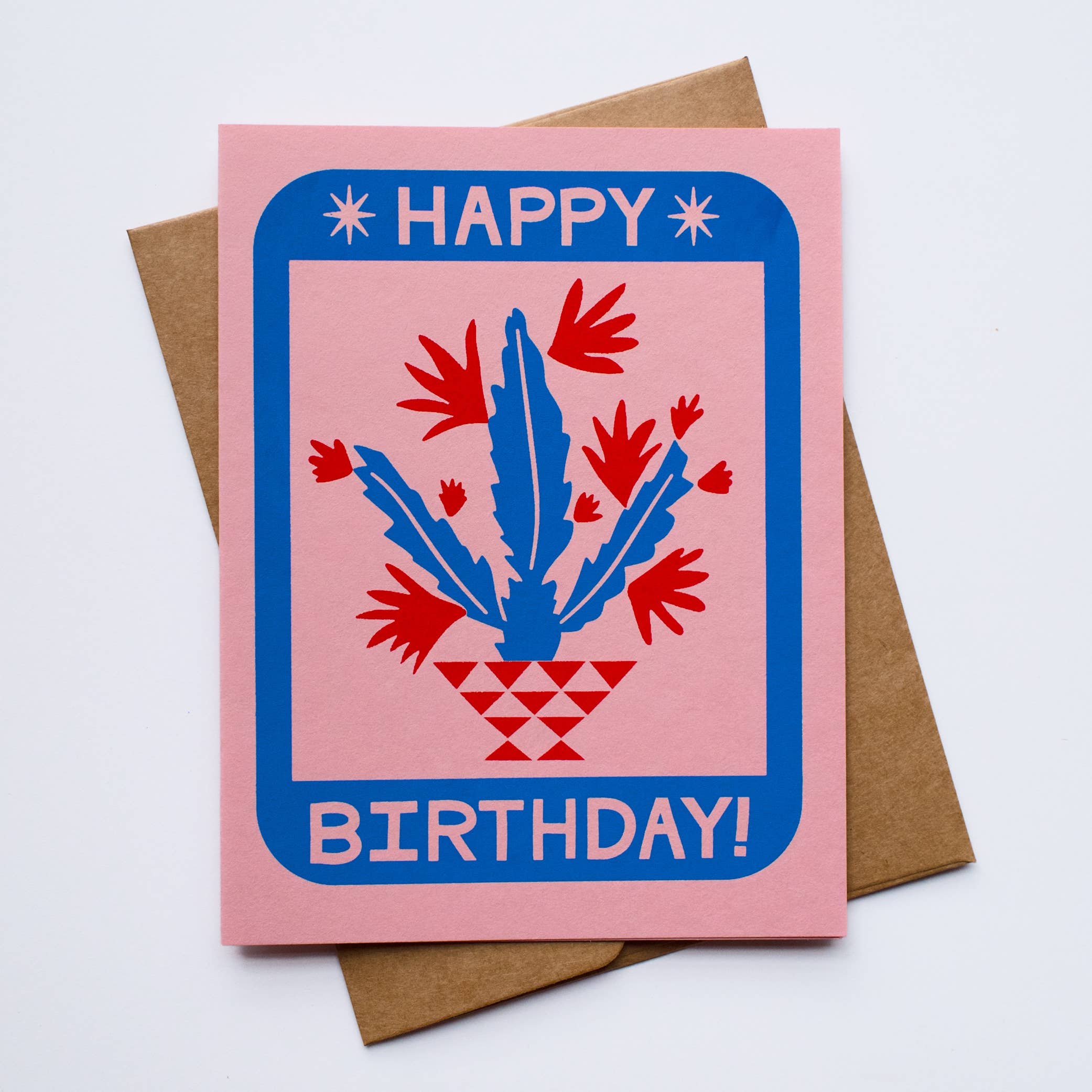 For the cactus lover on their birthday, this card inspired by the desert and the sun will make anyone feel warm and positive. We screen print our greeting cards sustainably and locally! Blank Inside Screen printed in house in Ypsilanti, MI Size: A2, folded Paper: 100% recycled card stock Hand-mixed, water-based ink 100% recycled paper envelope, included • Handmade • Faire Insider Free Shipping • Eco-friendly • Plastic-free packaging option available on request