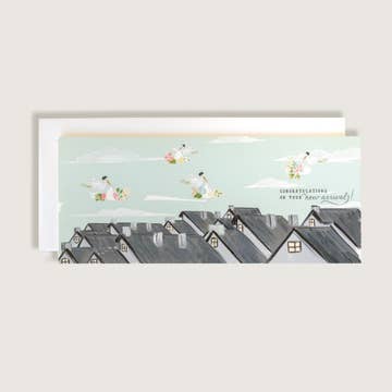 INSIDE GREETING: Where do you come from, baby dear? Out of the everywhere into the here. A sweet card to welcome a new baby! It combines the creativity of two Scots: Scottish illustrator Anne Anderson softly renders the mythical moment when the stork brings the baby, paired with the words of Scottish author George MacDonald from his poem appropriately titled Baby. This magical image was created when the stork myth gained popularity, popularized by Hans Christian Andersen in his baby-delivering tale, The Storks. Anne Anderson (1874–1930) was a Scottish-born artist who grew up in Argentina. Influenced by the Art Nouveau movement, she developed a distinctive style characterized by delicate lines and intricate details, which echoed the aesthetic of her artist husband, Alan White. This product was custom designed and created at our location in Seattle.