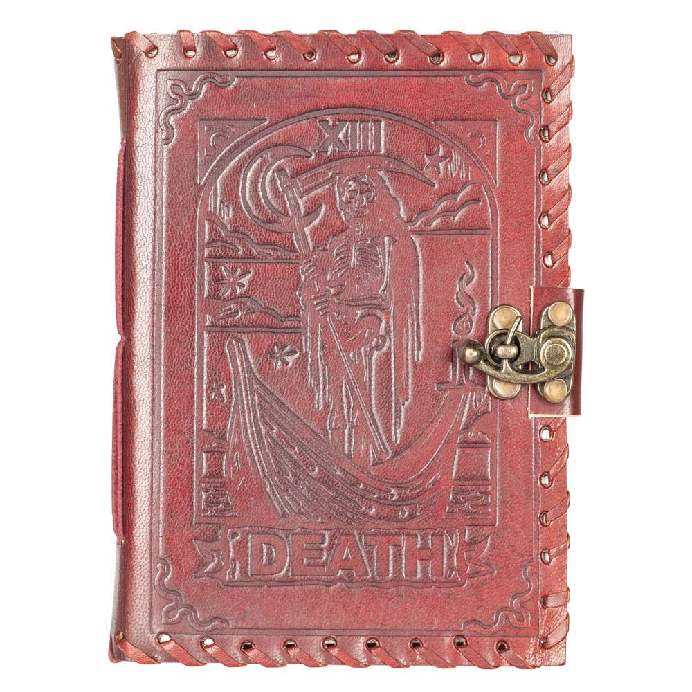 BEAUTIFULLY CRAFTED: Our handmade artisan leatherbound spellbook grimoire journals are crafted from genuine leather. The black colouring gives it a beautiful antique vintage feel. Being hand-made from natural leather. The cover features a beautiful design. VINTAGE LOCK AND STURDY BINDING - The vintage clasp lock will keep all your valuable writing locked inside. Sturdy hand-stitched binding to make sure that no paper comes out loose from your Spell BOOK. handmade vintage leather journal with deckle edge paper grimoire journal Antique blank spell Wiccan notebook the lover's special book of shadows daily lock clasp journal 7x5 inch Deckle edge paper leaves. Each leather journal and notebook we offer draws on our craftsman roots, with a balance between practical and beautiful. We take pride in sourcing the highest quality leather and paper. Leather journals offer a connection between your mind and your written words. A beautiful personalized journal will become your constant companion