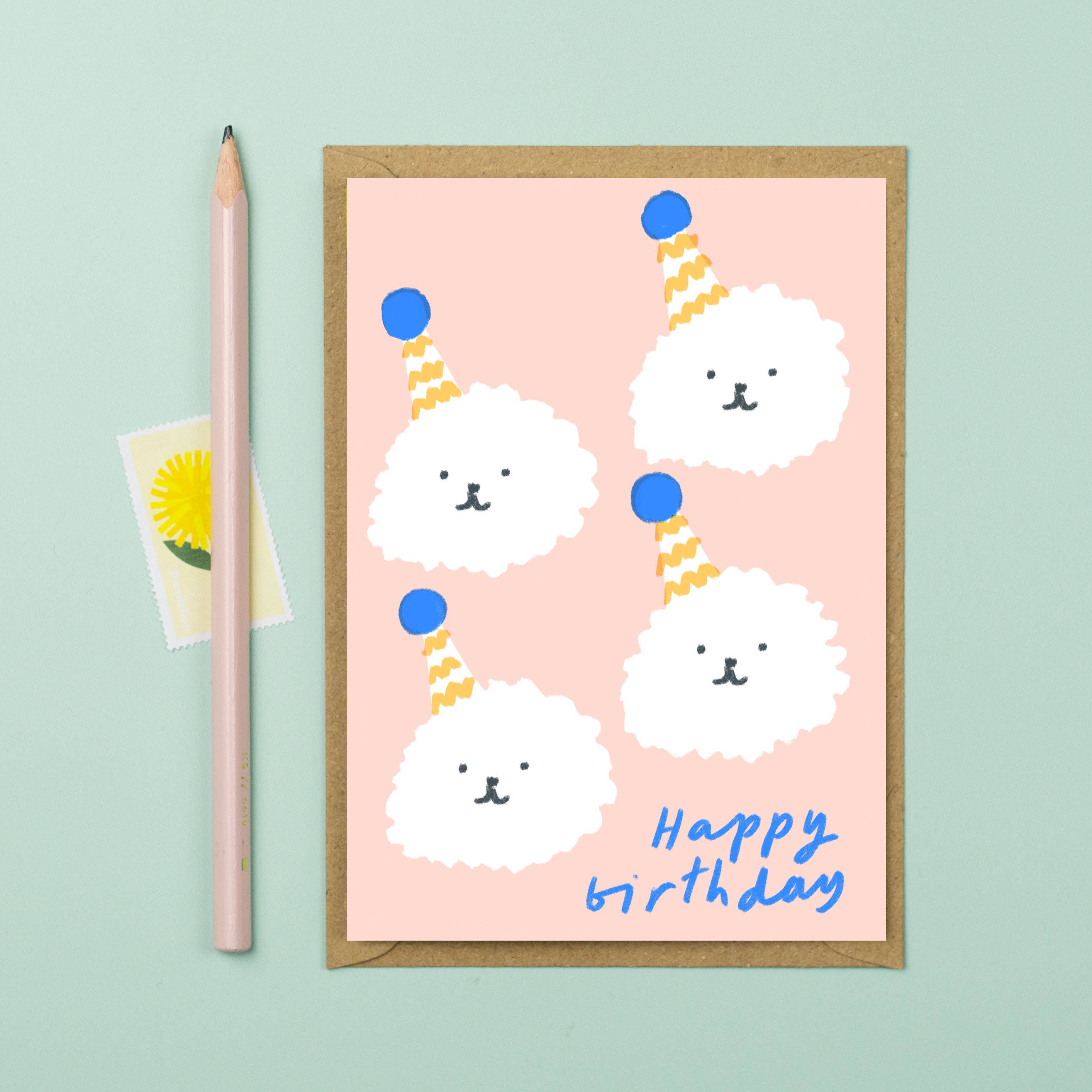 - A6 size - Blank on the inside for your own personal message - 300GSM high quality card - Recycled kraft envelope - Packaged in compostable cello wallet - Designed and printed in Nottingham, Uk. A simple bold card full of cuteness. The perfect card to a friend who loves dogs, especially Poodles or Bichon Frises! This card will bring a smile to the recipient face on their birthday.