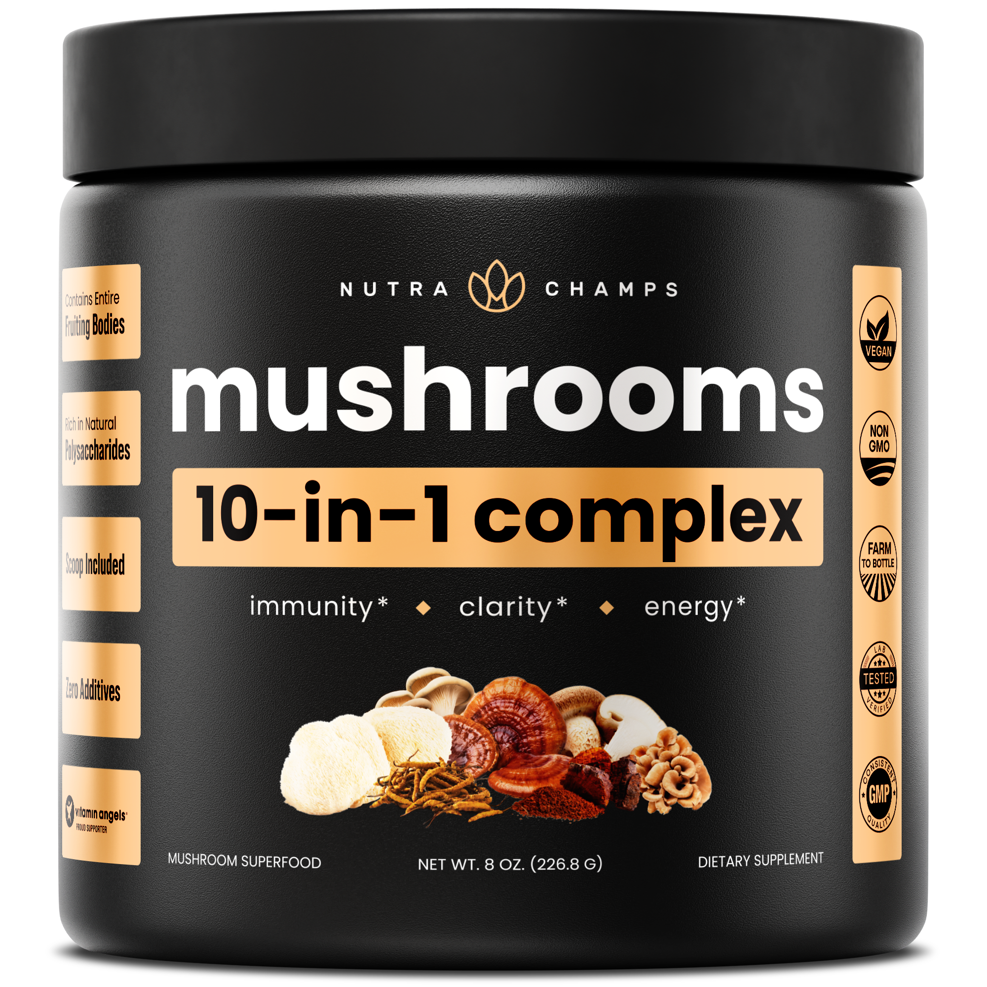 Premium Mushroom Supplement for Immune Support - 8 Organic Mushrooms Including Lions Mane, Cordyceps, Reishi - Natural Nootropic Supports Focus, Memory & Drive for Men & Women 100% ORGANIC MUSHROOMS: Our Wild Mushroom Supplement contains 8 types of powerful mushrooms, all USDA-certified organic. Ideal for men and women who demand the best for their minds and bodies. PREMIUM QUALITY: Non-GMO & Gluten-Free. Formulated by experienced healthcare professionals in an FDA-approved facility following strict cGMP guidelines to ensure optimal purity and potency. HOW TO TAKE: Take two (2) capsules daily with water. Pro Hack: For optimal results, take your first meal of the day for ideal nutrient absorption. WILD SATISFACTION GUARANTEE: If you don’t love your results with our Wild Mushrooms Complex, simply return your order for a refund within 90 days.
