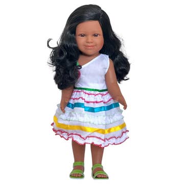 New York Times FEATURED Black Doll AS SEEN IN ESSENCE MAGAZINE'S HOLIDAY GIFT GUIDE This beautiful black doll inspires you to love yourself, simply because you can see yourself in her, with her beautiful features and kind smile. Fashion forward and ever so stunning as she takes her place among your existing doll collection. Representing you as you share your talents with the World as a beautiful girl both inside and out. Why doesn't she have a name? We want you to use your imagination to name her. Did you know? She loves to dance and has a pet cat named Sparkles. She loves to spend the day at the beach with her family. Her favorite color is lavender and she loves to collect seashells, which she paints in different shades of purple.