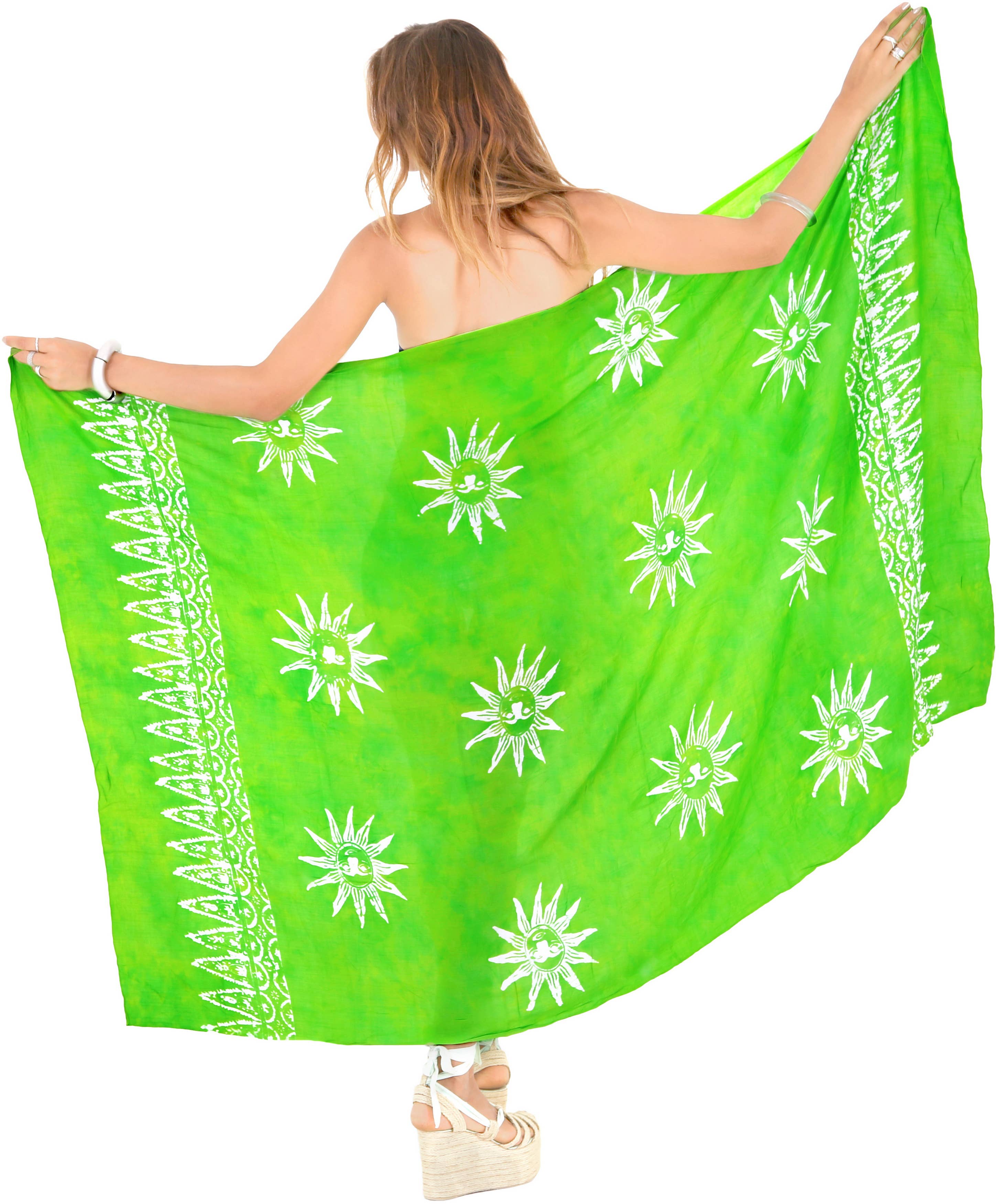 Pareo (Sarong) is made of 100% Rayon and super soft! These are perfect to throw on after dipping in the ocean, wear on beach walks, or lay on them while you get your perfect tan. Size: 73" x 48.5" 100% Rayon **Preorder item if it shows 0 available** Will ship 7-9 business days after order is placed. If order is placed with other items in stock- all items will ship when full order is ready to ship.** Each Pareo is hand screened so each will have its own uniqueness! Some have print out of lines/ink dots these are not flaws just results of the hand screening process.