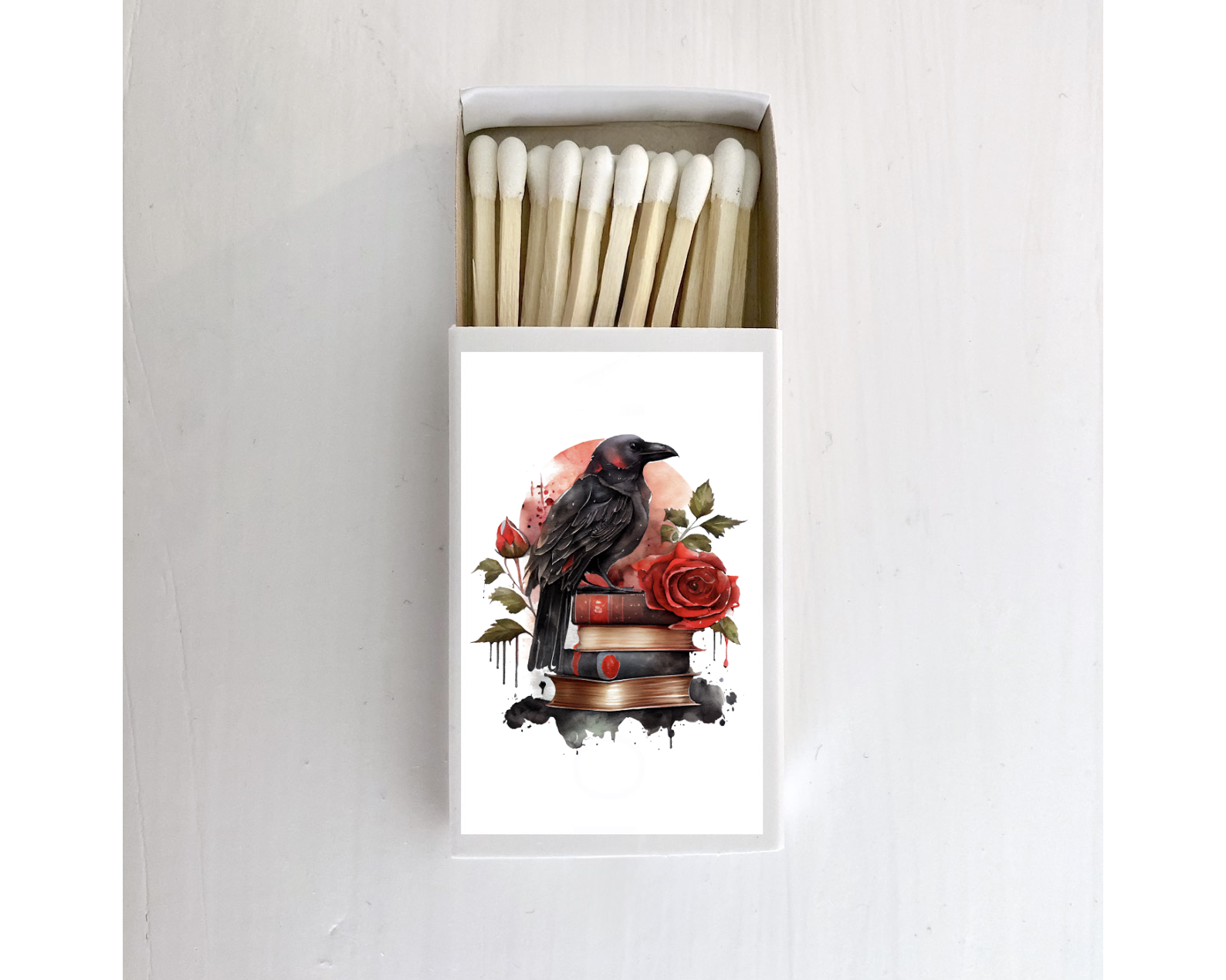 Ignite your inner magic with The Witching Hour Matchbox, a beautifully designed and whimsically mystical accessory for your sacred space Set intentions when you light your candle Handmade with love <3. 2 1/4" x 1 3/8" x 3/8" If choosing to add a logo, we will add it to the back of the match. Please email us your logo info@lunastry.com.