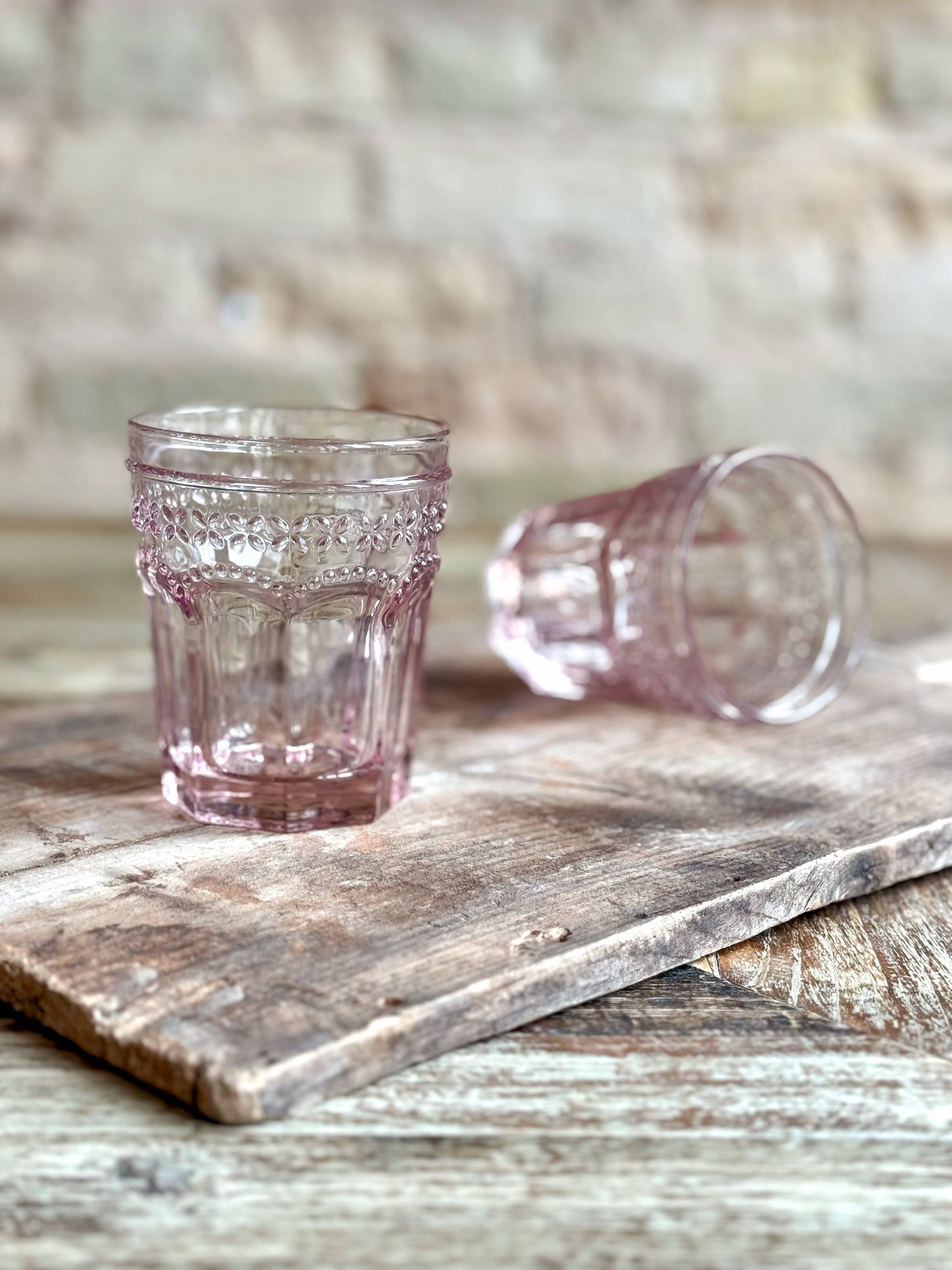 Color drenched in our fave hues. Vibrant + and touch faded at the same time. Pairs beautifully with our gloriously patterned fanciful 18k gold glassware.. we may be a little obsessed (Oh… and did we mention: dishwasher safe) Glass. Import. 10oz. Our Patina Vie Pressed Glassware collection is designed to compliment a wide assortment of dinnerware collections. Our stylish mix of goblets and tumblers will quickly become an entertaining essential. Crafted in a stunning color palette, our glasses are designed to mix and match, adding style to any tablescape. Dishwasher safe drinkware makes our glassware practical for everyday use. Sold in S/6