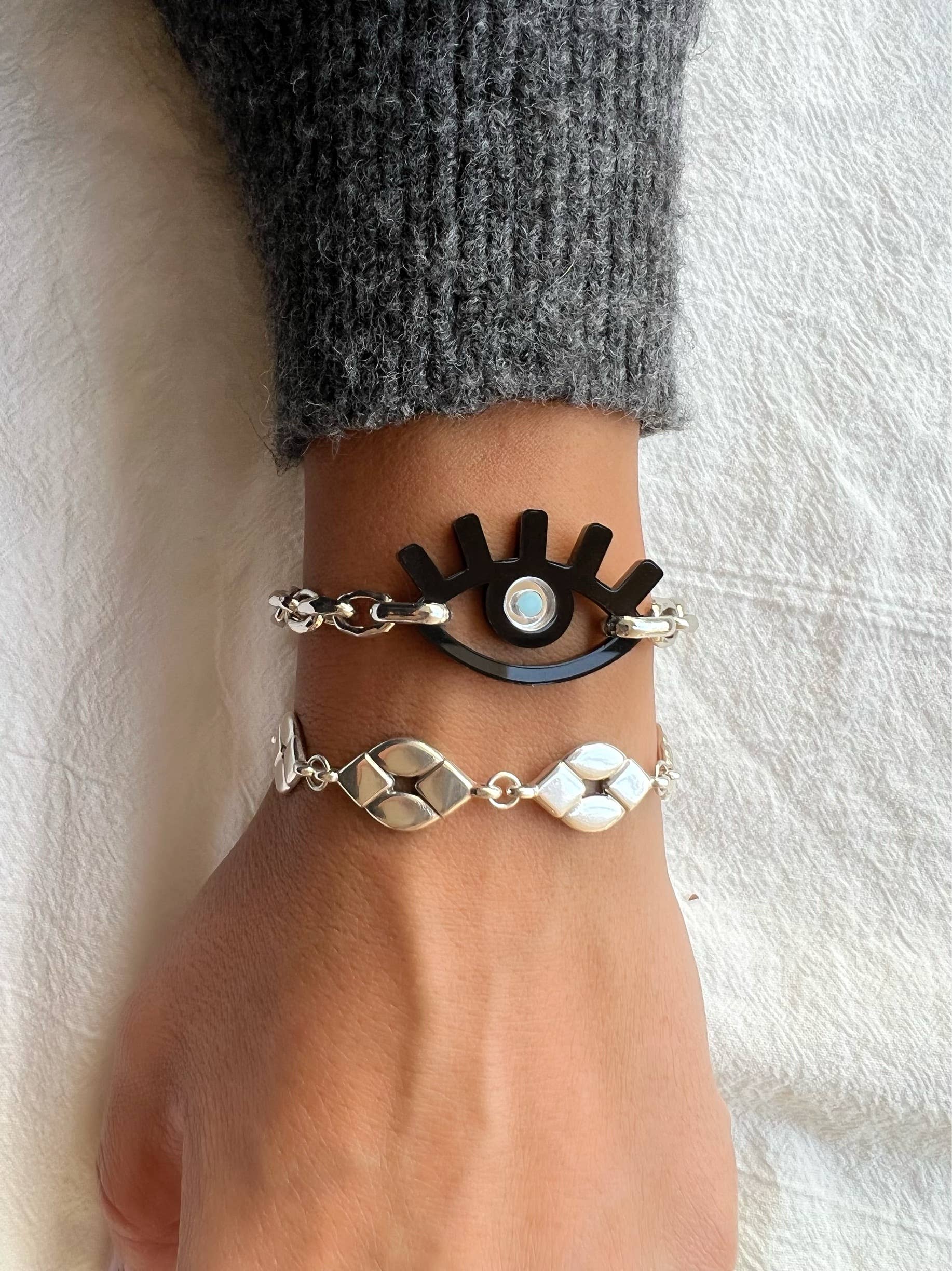 My new a handmade ornament has a unique evil eye design in oval shape that you can select it in black and gold color or in black and white. It is designed to adorn any surface and is able to decorate every home or every office. Be sure to secure your own from the Christina Christi Store before they run out! DIMENSIONS - Evil Eye Ornament: 11 x 4 X 1.2 cm (4.33 x 1.7 x 0.47 '') MATERIALS - Plexiglass Mirror.