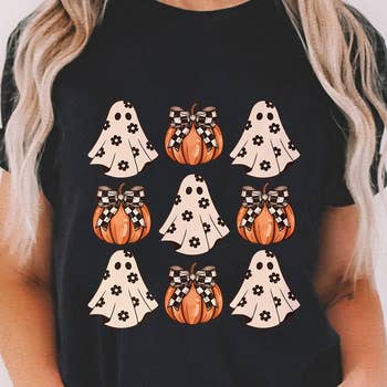 Wholesale Halloween Coquette Pumpkins and Ghosts Graphic Tee