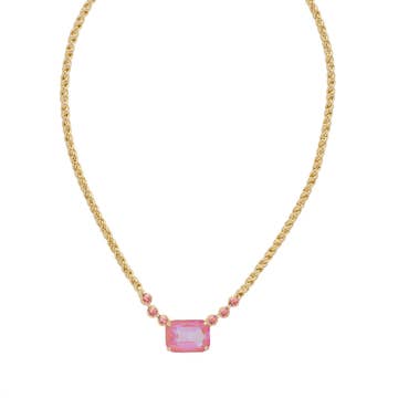Our bright Miyuki seed bead and crystal necklace, hand strung with center crystal quartz point, on gold filled chain, lobster clasp. Each piece is adjustable from 15 inches choker to 18 inches pendant. Your purchase will arrive on our custom "Pink Hearts" easel-back card, tucked inside a complimentary muslin drawstring gift bag. Handmade in Portland.
