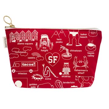 Order Details * REORDER MINIMUM: Order total must reach $250.00. Mix and match products and designs. * RETAIL PRICE: $36 Collegiate Pouches * HOW THEY'RE MADE: Our pouches are uniquely WOVEN (not printed!) on luxe poly fabric that resists dirt, stains, shrinking, and stretching. * WHAT MAKES THEM EXTRAORDINARY: Each pouch is complete with a chic custom zipper pull and our signature black printed textile lining. Bonus: With each purchase, a percentage of sales are donated back to each respective schoolÑfunding scholarships, student activities, or recreational programs. * SELLING TIPS + TRICKS: Fill your complimentary display suitcase with other local favorites and include with your catstudio display. Or place on your counter for a great point-of-sale buy! Product Details * 100% Polyester * Spot clean * Measures 7" x 5.5" * Designed in Petaluma, California | Made in Thailand