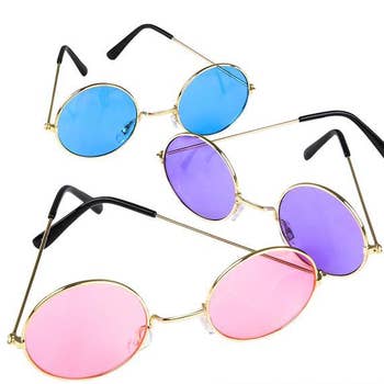 Circle large lens with gold frame and assorted colors. Pre-packed Assorted Dozen (12 pcs) - Frame Material: Copper Alloy - Lens Material: Polycarbonate