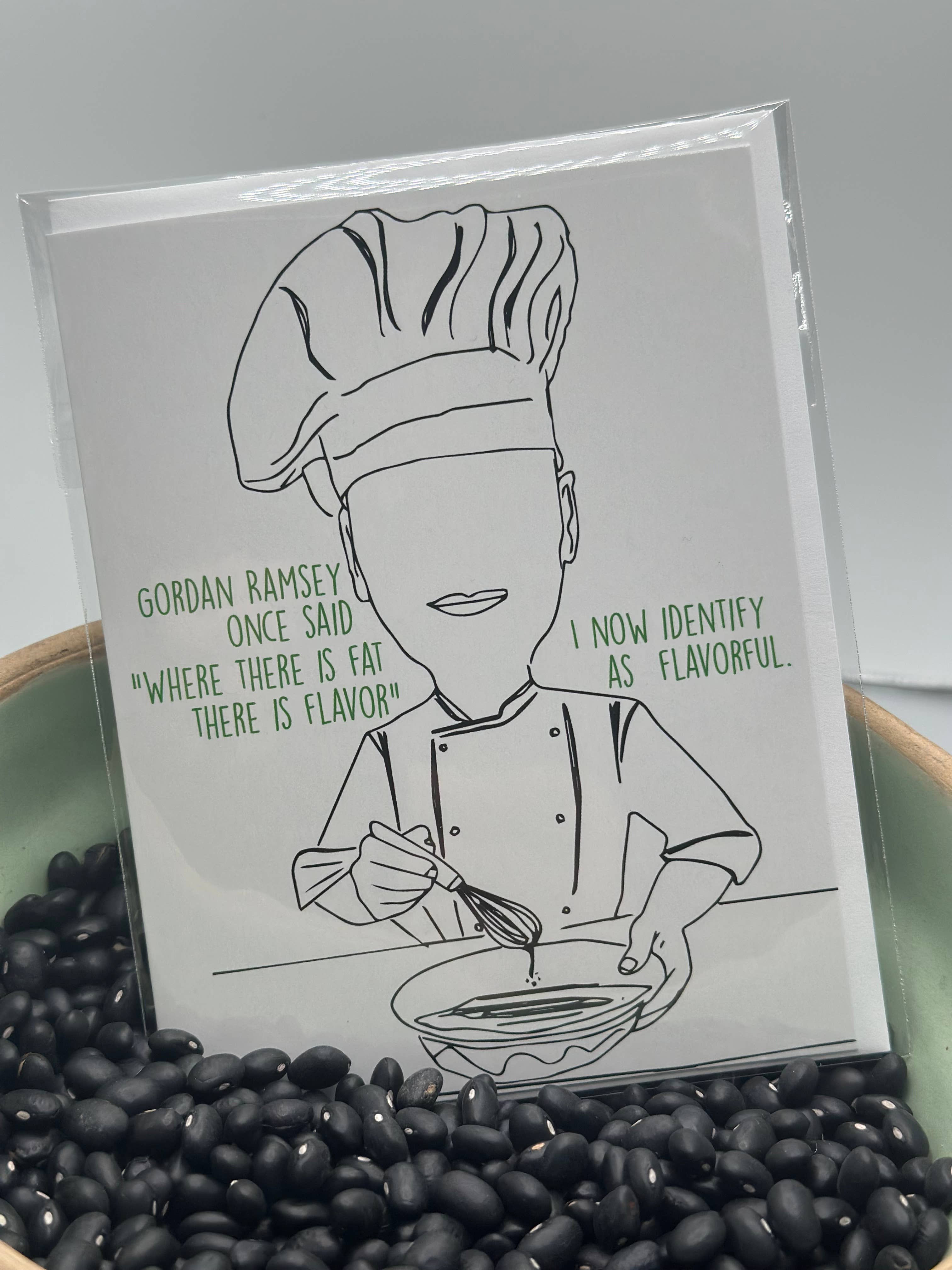 Get ready to season up someone's day with this adorable Yes Chef Bear Card! Featuring Carmie, this greeting card is perfect for any cooking enthusiast. Let them know they're the masterchef in your life ;) *** INCLUDES *** 6x Greeting cards (blank inside) 6x Envelopes *** MEASUREMENTS *** Each card is vertical standing, measuring at 4.25x5.5" *** PACKAGING *** Choose between Plastic Sleeve, a low-tack Card Clasp, or Envelope only. The card clasp sticker will not leave any marks on the card, and it (along with envelope only) are excellent options to keep your shop environmentally friendly :) (there is no price difference between options)