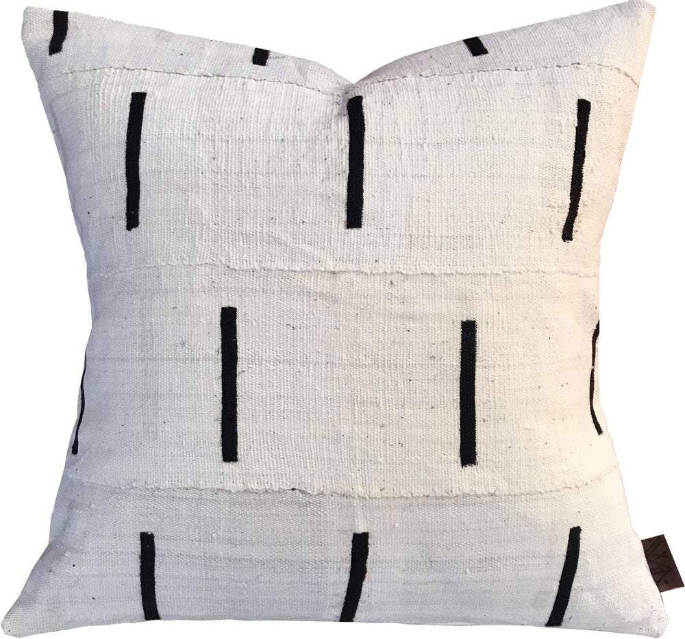 As seen in Lonny Mag! Crisp and clean, this minimalist design is the ideal accent for ornate and modern spaces alike. Woven and designed in Mali, West Africa, pillow sewn in USA. • Envelope enclosure, upholstery-grade linen backing for extra durability • 20x20", Spot clean only • Woven in Mali with 100% organic cotton and natural dyes, Born IN BROOKLYN. • Ships 2-10 business days after order is placed; a shipping notification will be sent to the email address provided at checkout - DMs on social media regarding orders are not monitored.