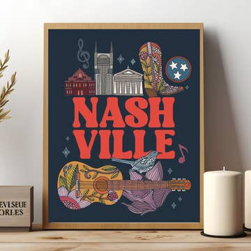 Custom map print of Nashville, Tennessee featuring our woodblock style inspired by traditional Japanese woodblock art. Each print is expertly printed on museum quality matte paper in the US and comes flat-packaged with a heavy duty backing board and self-sealing plastic wrap. Choose either portrait or landscape layout. Dimensions - 12" x 18". Weight - 0.5lbs.