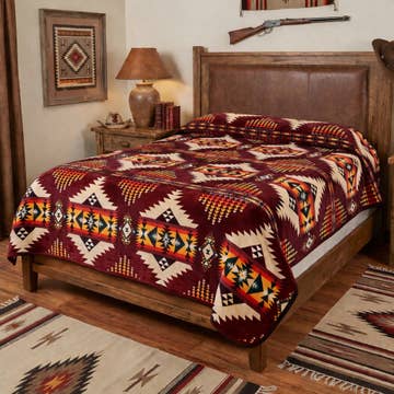 Wholesale Merino wool bed blanket WINE & HONEY - single - red/yellow
