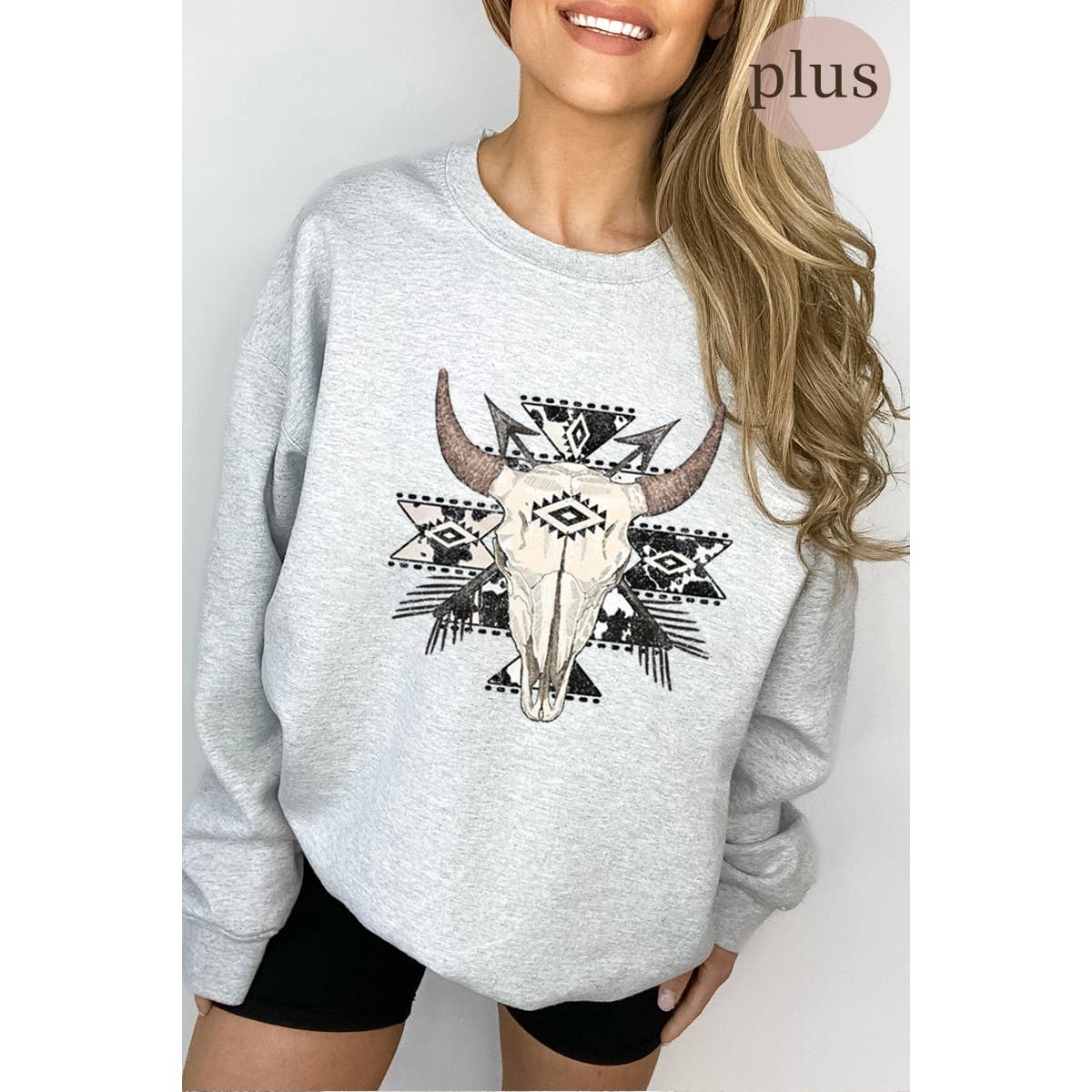 Graphic sweatshirt with an authentic vintage look and a softer feel that is only possible to achieve by using our special enzymes to dye and mineral wash processes. - Pre-shrunk - Long sleeves - Coldwater preferably like colors - No bleach - Tumble dry low - Model is wearing a size Small (LENGTH: 26" / BUST:46") Graphic tee & top garment dye. Screen printed t-shirts Graphic sweatshirt with an authentic vintage look and a softer feel that is only possible to achieve by using our special enzymes to dye and mineral wash processes. - Brushed fabric - Pre-shrunk - Washing Instructions: - Cold water preferably like colors - No bleach - Tumble dry low Graphic tee & top garment dye. Screen printed t-shirts SWEATSHIRT , SWEATSHIRTS, AZTEC, BOHO, WESTERN, TRIBAL