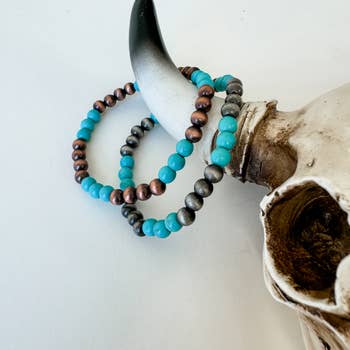Add edge and color to your boho style with these multicolor skull beaded bracelets by Jewelry By BDK. Handcrafted with vibrant wood 7-8MM beads and antique gold skull accents, these bracelets fuse earthy, artistic energy with a touch of rocker flair. Designed for men and women, they’re perfect for layering or wearing solo as a bold statement piece. Each bracelet features a unique mix of color combinations, ideal for festival wear, boutique collections, and bohemian fashion lovers seeking something with attitude and individuality. Details: Handmade stretch bracelet with colorful wood beads (fits average wrist sizes 7.5-8.5 inches) Antique gold metal skull and spacer accents Unisex design – great for men or women Lightweight, comfortable fit Perfect for music festivals, streetwear, or everyday boho style Stand out with this handcrafted piece that celebrates creativity, edge, and individuality, authentic boho jewelry with attitude.
