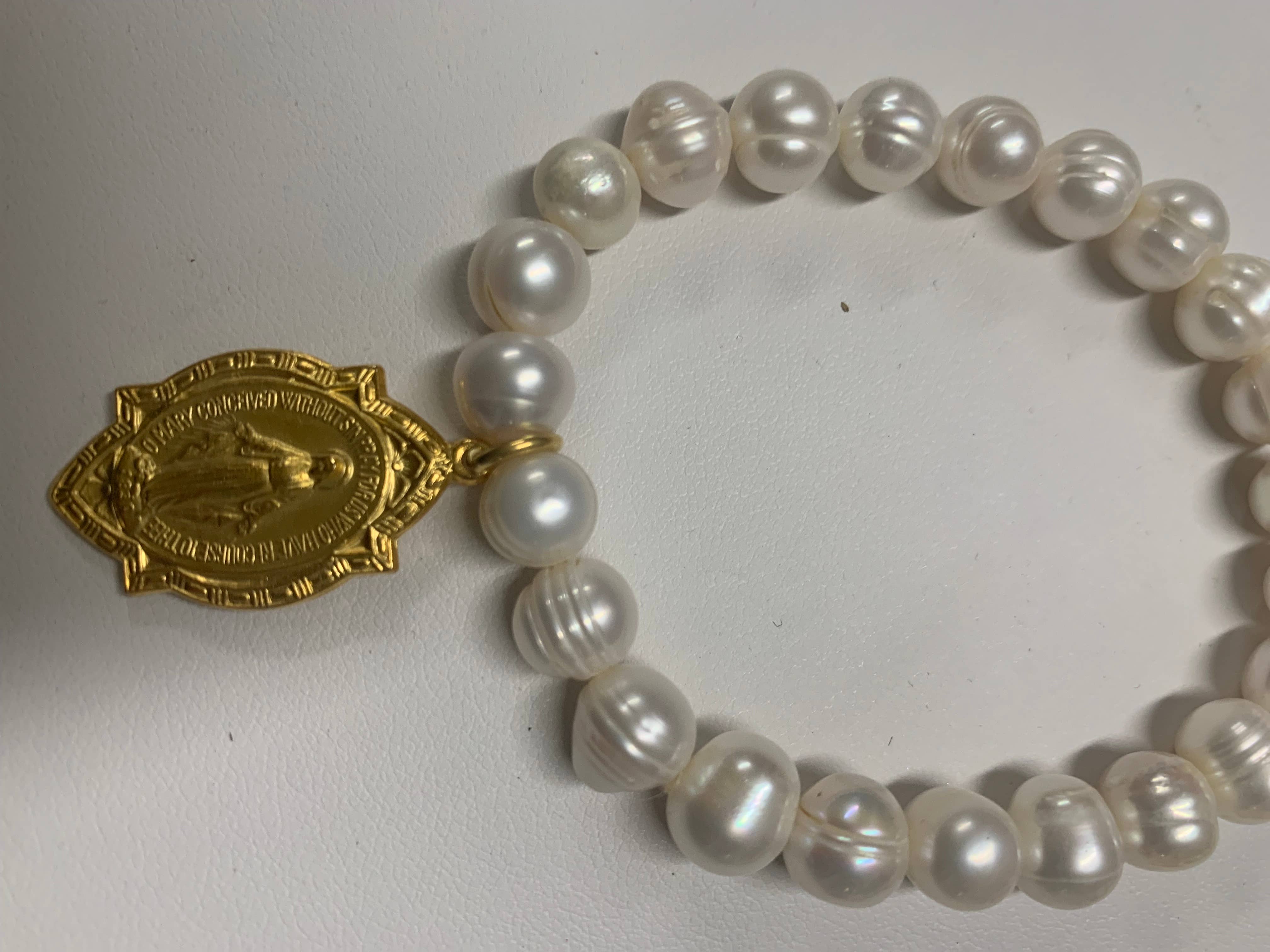 Religious Medal 4way Cross Pacifier Clip with Pearl White silicone strap