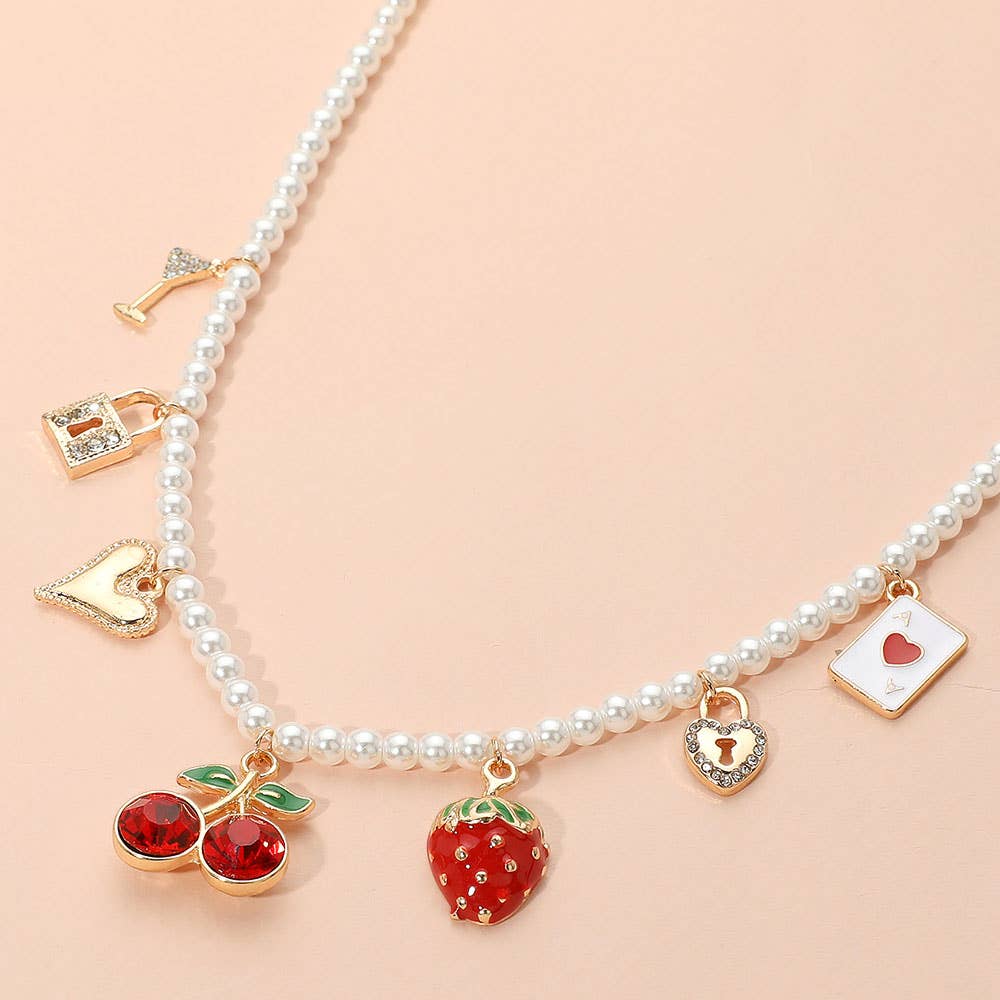 Wholesale Western Cowboy Boot Hat Bow Cherry Heart Charm Station Pearl Floral Ceramic Ball Beaded Layered Necklace
