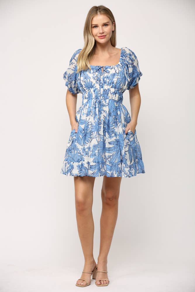 Sconset Block Print Dress Sleeveless (Blue)