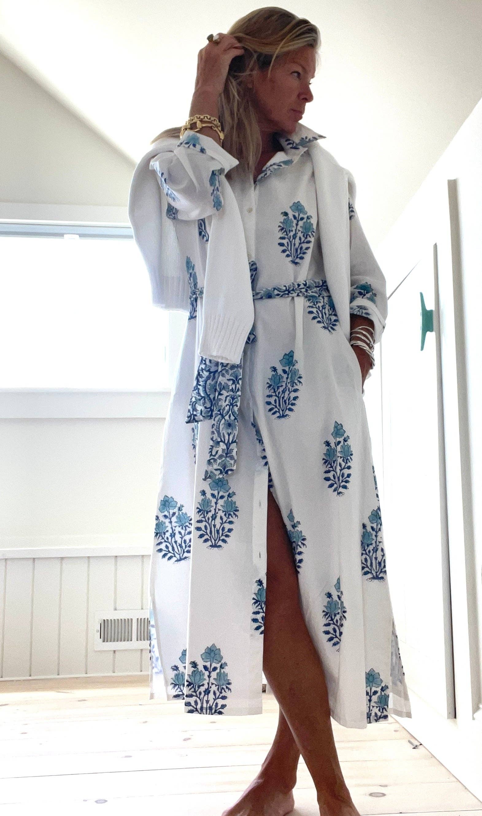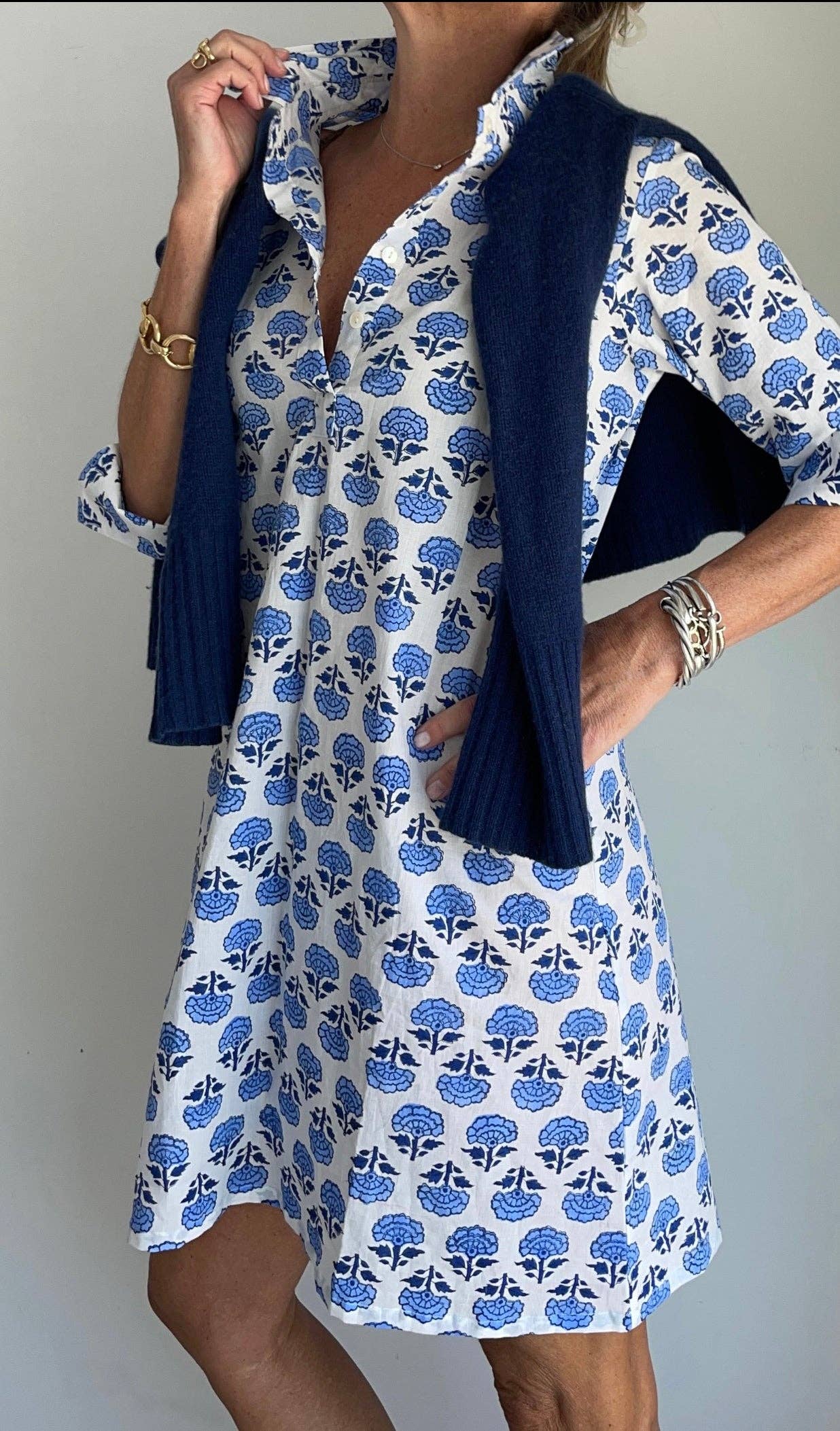 A Pink Pineapple exclusive - 100% hand-blocked cotton, fully lined, front button placket , slight A-line silhouette for an easy, carefree fit with a classic look. And of course with easy side seam pockets!