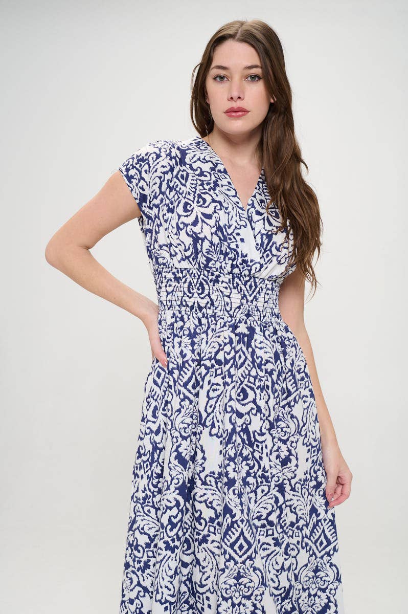 Wholesale Sconset Block Print Dress Sleeveless (Blue)
