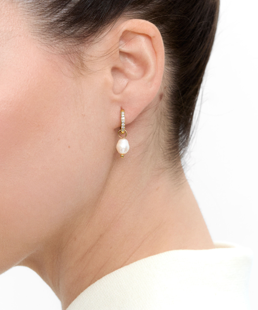 Gold Pearl Earrings - 18k Gold Stainless Steel Pearl Hoops