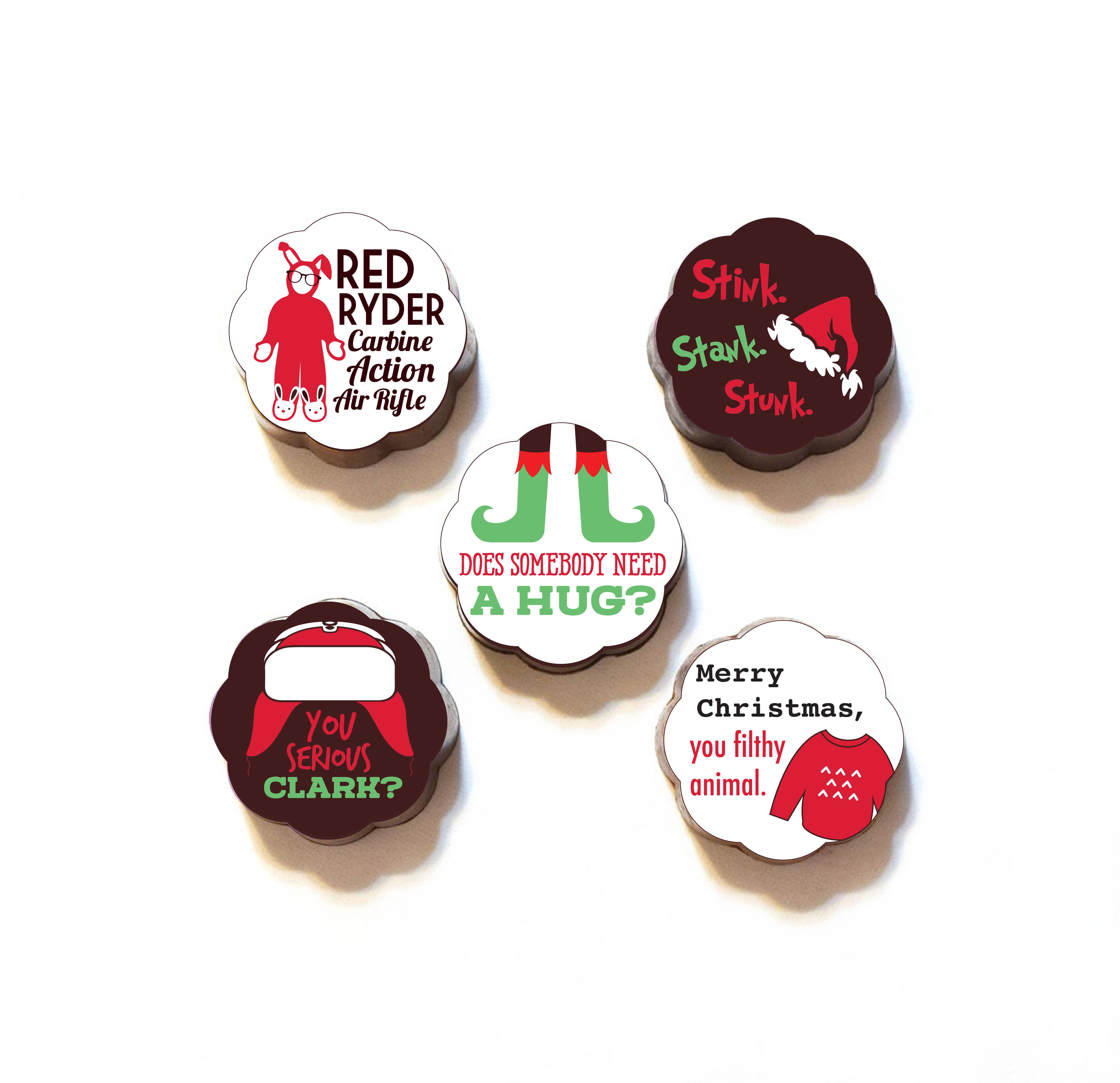 Assorted Hanukkah Designs Dreidel Menorah Star of David Box of 5 - clear top, white base Perfect Vanilla Bean Caramel with Fleur de Sel crystals sprinkled inside a chocolate shell. An assortment of Milk and Dark Chocolate. Remember, every purchase supports the employment of individuals living with intellectual differences. All 5 piece assortments are available as other sizes - single chocolate in a tin, 2p, 4p, 9p, 16p or 25 piece. Fair Trade Chocolate, Handmade Caramel with all real ingredients. Colors derived from Natural Sources. Message us for more info: