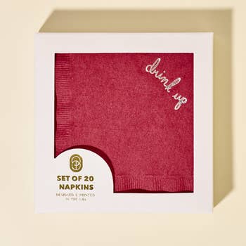 A package of 20 beverage-sized paper napkins cello-wrapped and ready to gift or enjoy. Our napkins are designed in-house and printed in the USA. We use high-quality, 3-ply napkins that are recyclable. You won’t find our designs anywhere else!