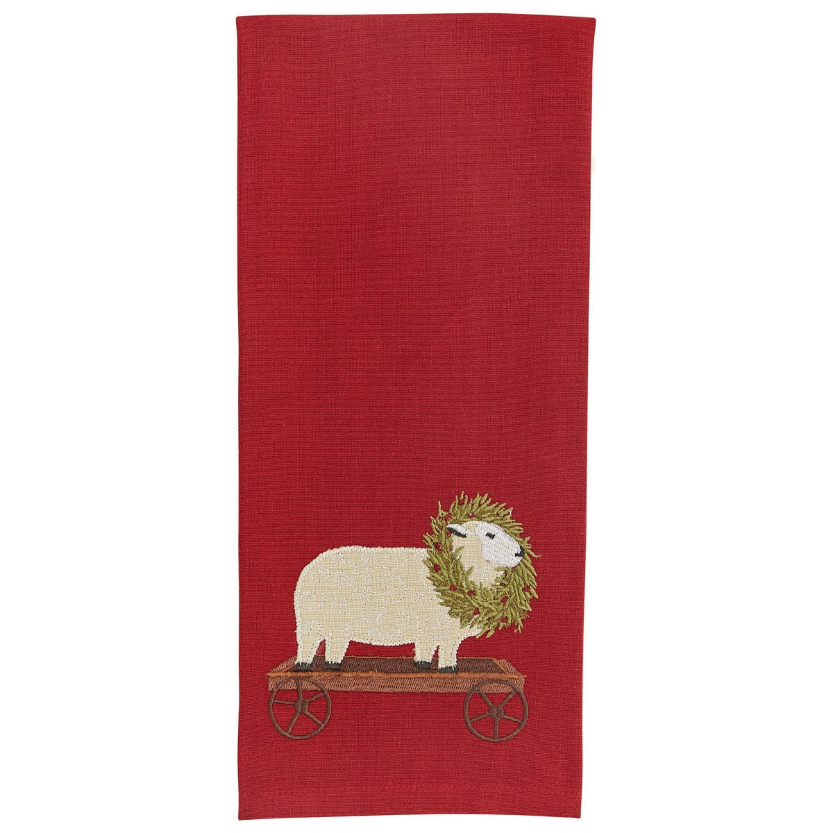 Bears, bunnies, chipmunks, foxes, deer, and owl gather together in their neck of the woods to create a festive display of unity. The forest friends hold an evergreen wreath with silver ornaments and gold candles. Embroidered on 100% linen. Unbleached, undyed, and Oeko-Tex Standard 100 certified. 25" × 18" unfolded. 12.5" × 6" folded.