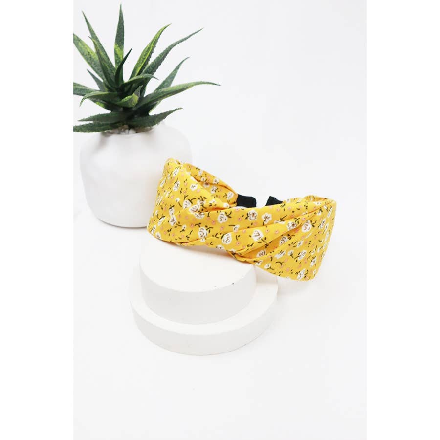 Wholesale Yellow Flower French Twist Headband, List Prices Reflect MSRP, HB-YFLOWER