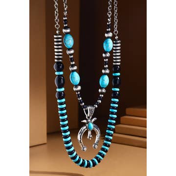 Handmade Beaded Blue Black Seed Bead Layered Medicine Man'S Eye Necklace
