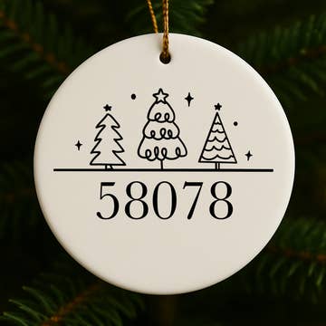 PLEASE NOTE: These are custom ornaments and you MUST provide the zip code/town/state when placing an order. We cannot accept your order without this information. A beautiful ornament featuring a unique Farm font with cute farm accents on a whitewashed wood background. Our single sided aluminum ornaments are scratch-resistant, fingerprint-free, antireflective and include a red satin ribbon for hanging. These Zip Code ornaments are perfect for adding charm and character to your tree. They also make a great gift for student gift exchanges as well or to celebrate a recent family vacation. SPECIFICATIONS ● 4"(L) x 2.76"(H) ● Made in USA Please SPELL OUT your ZIP CODE/TOWN/STATE when adding the personalization details.